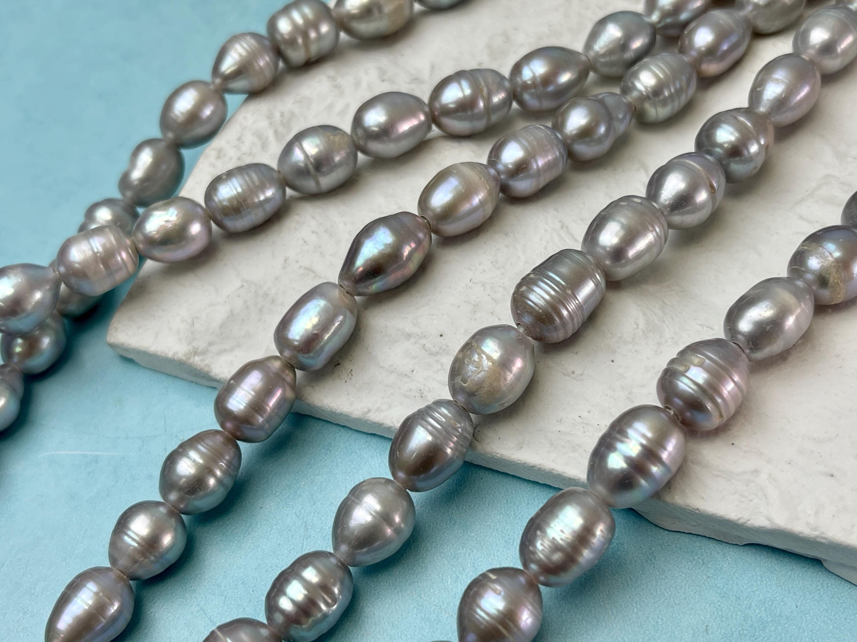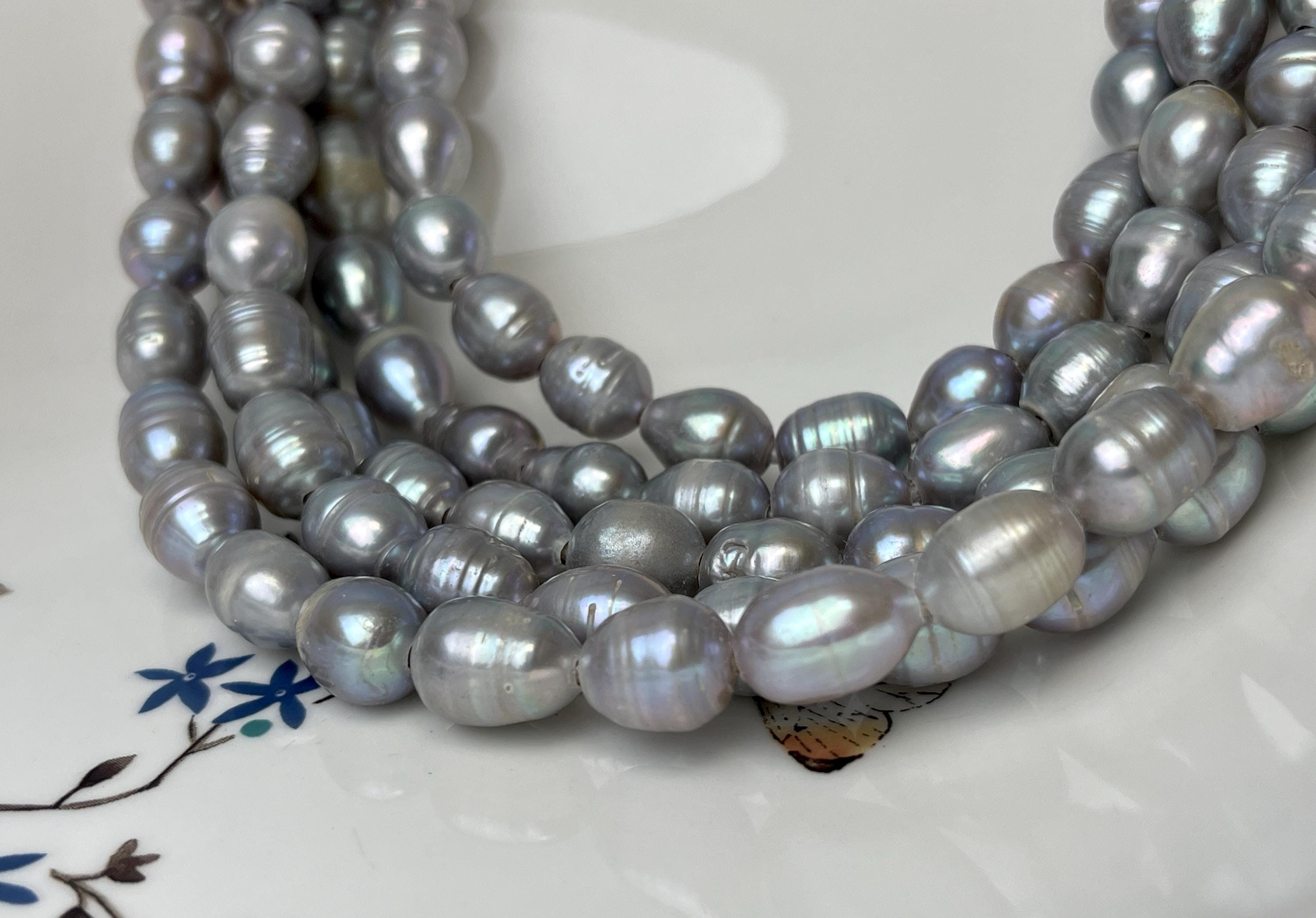10x11-12mm Large Hole Rice/Oval Gray Freshwater Pearl Beads Hole Size 2.2mm #P2935
