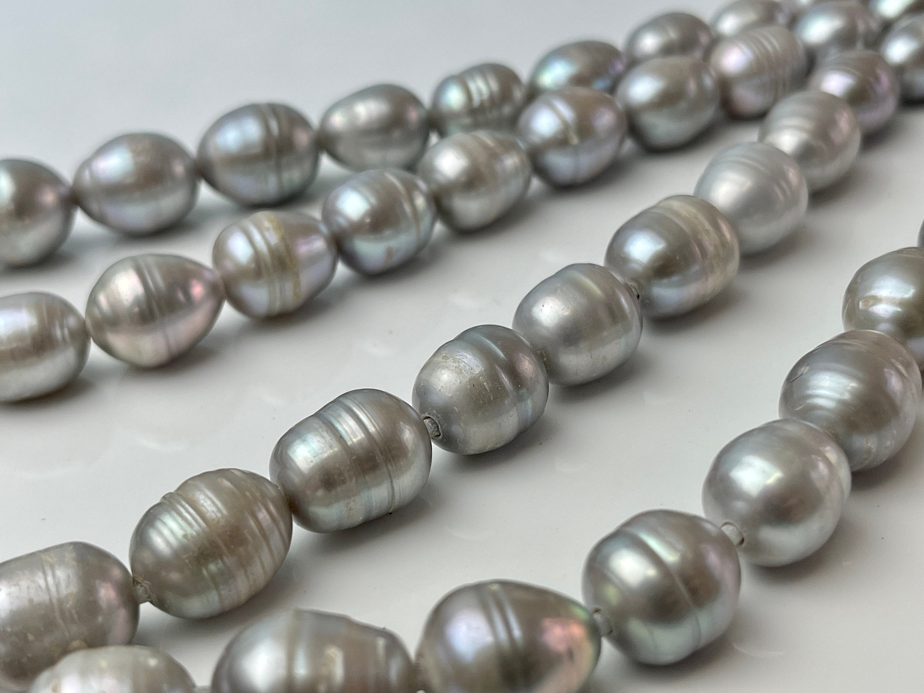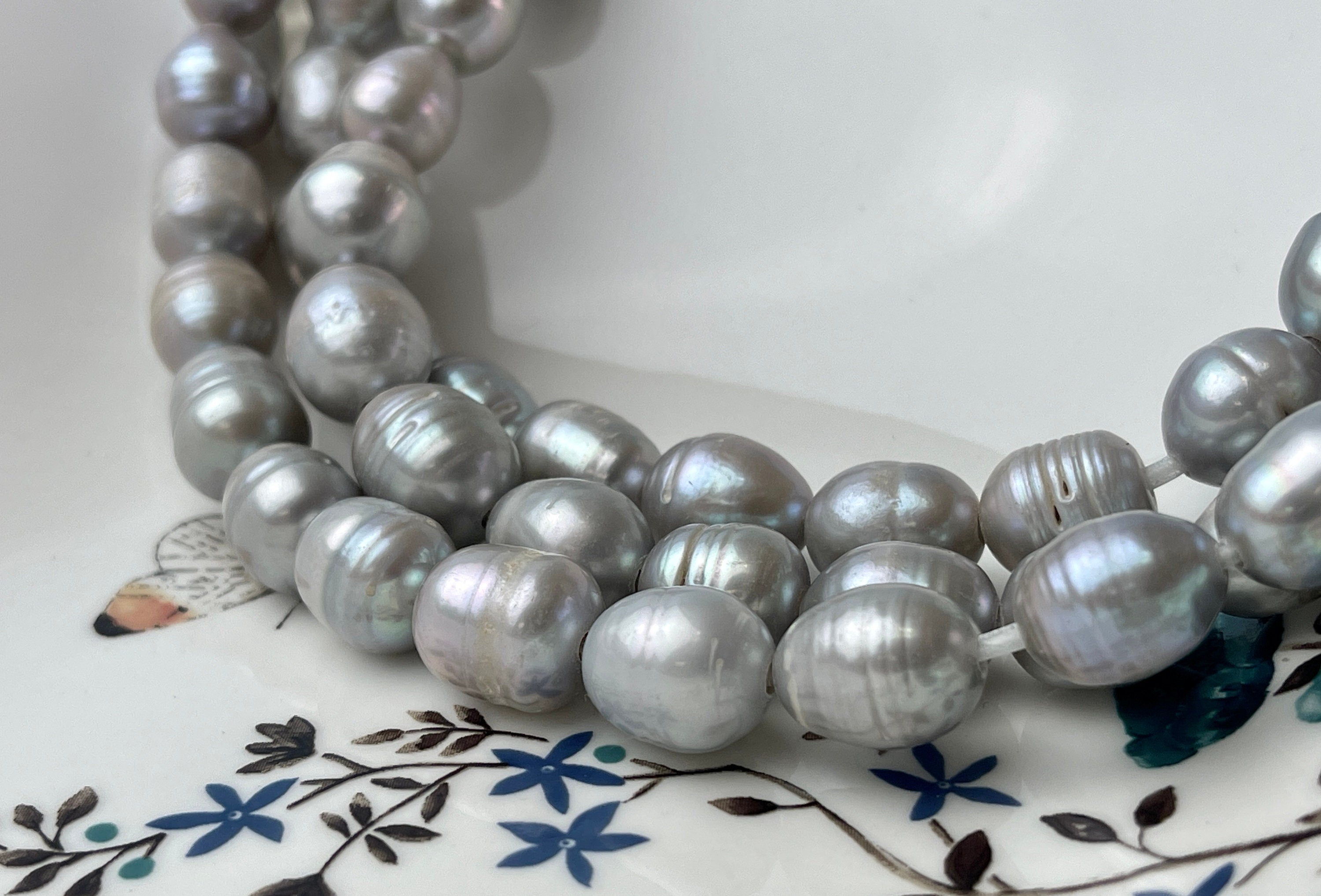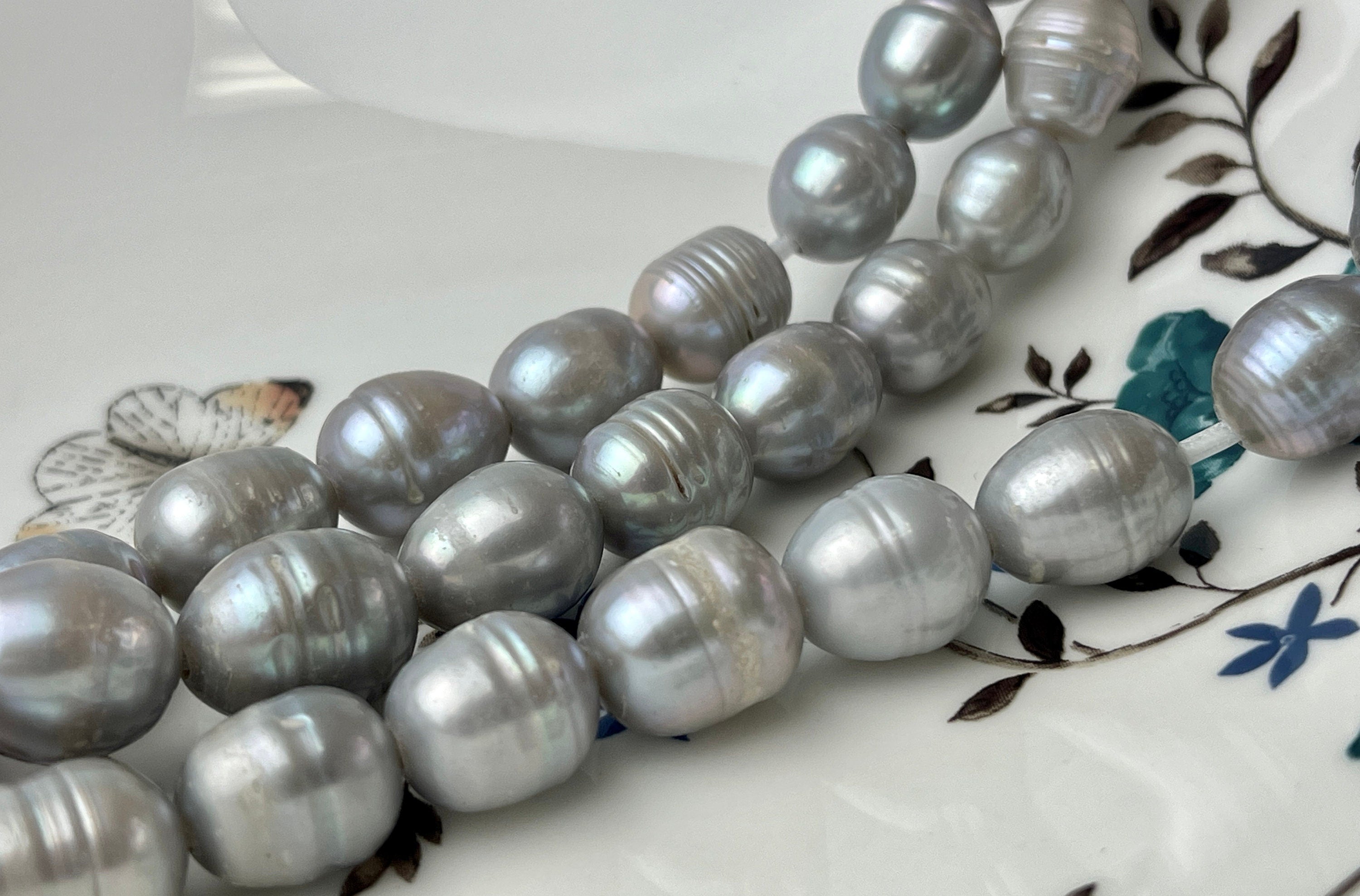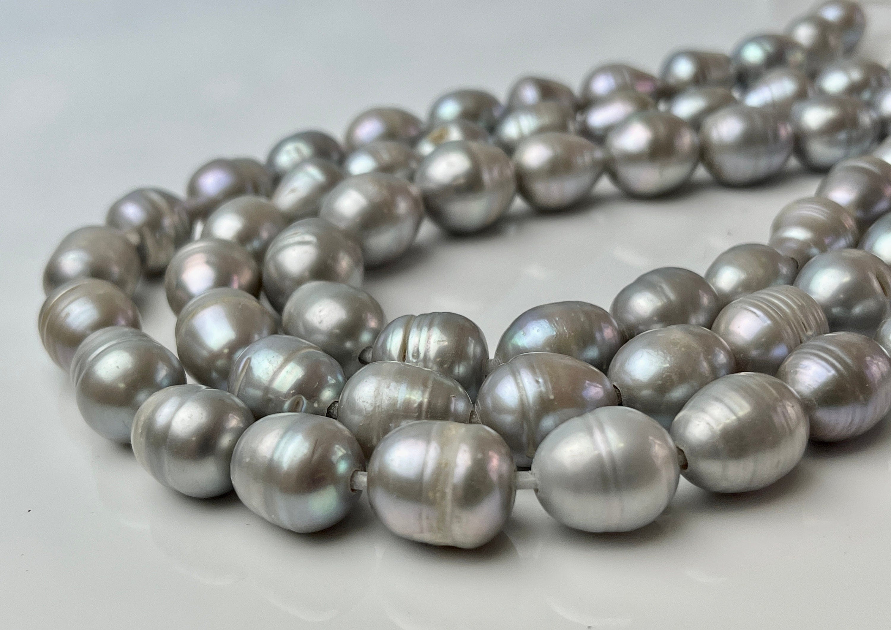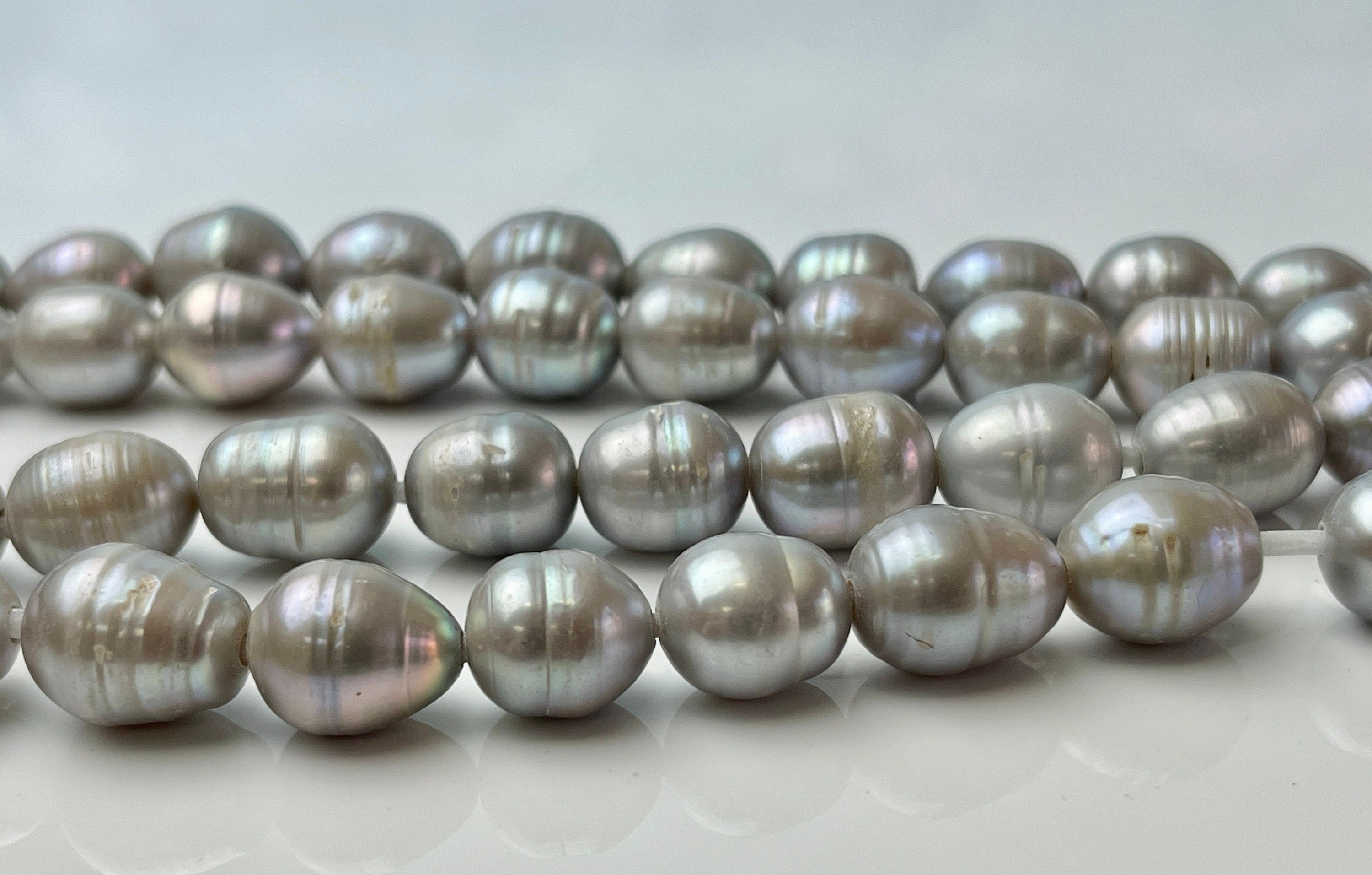 11-12x13-15 mm Large Hole Silver Gray Freshwater Pearl Beads Rice/Oval Shape Hole Size 2.2 mm #1435