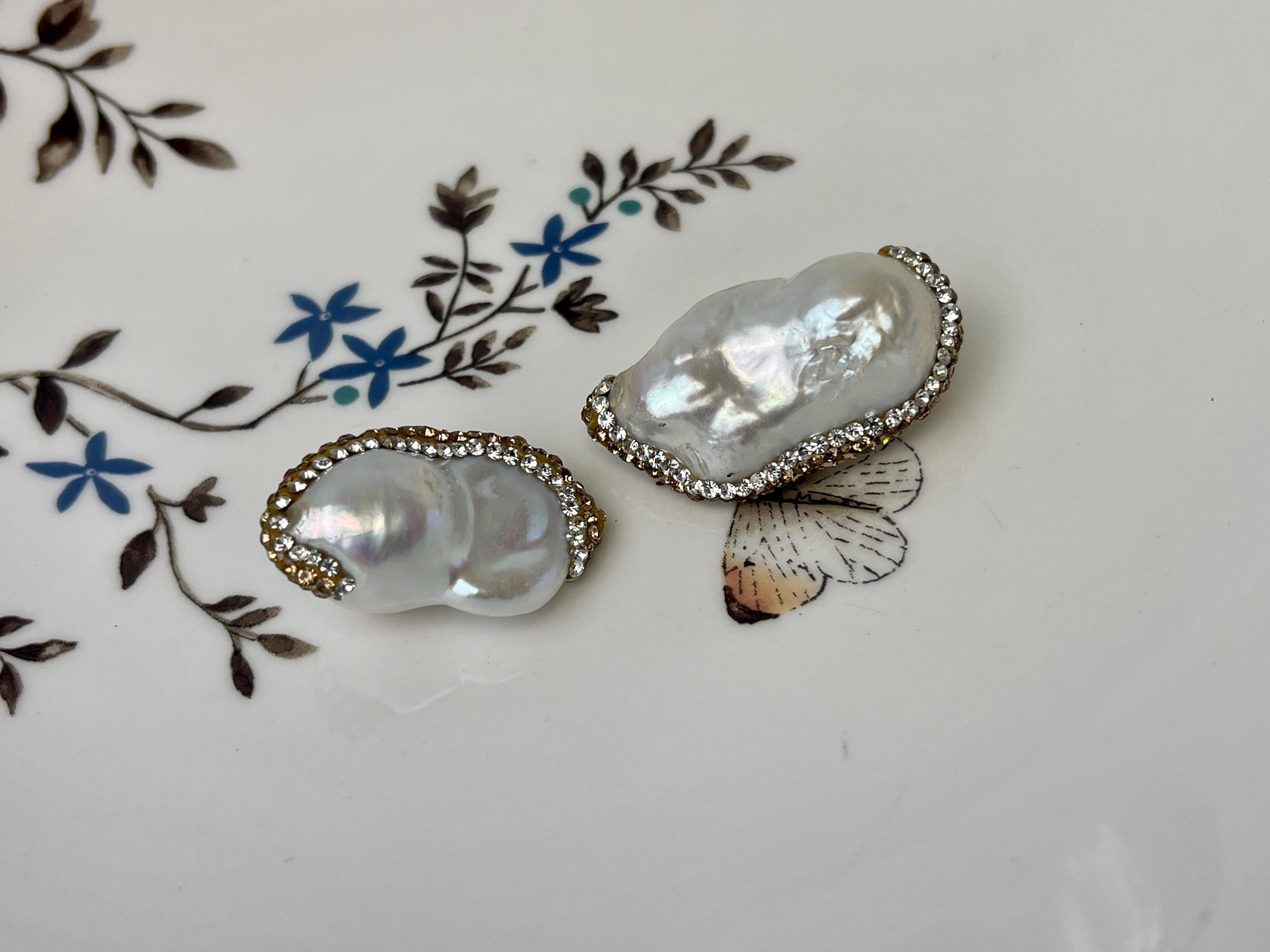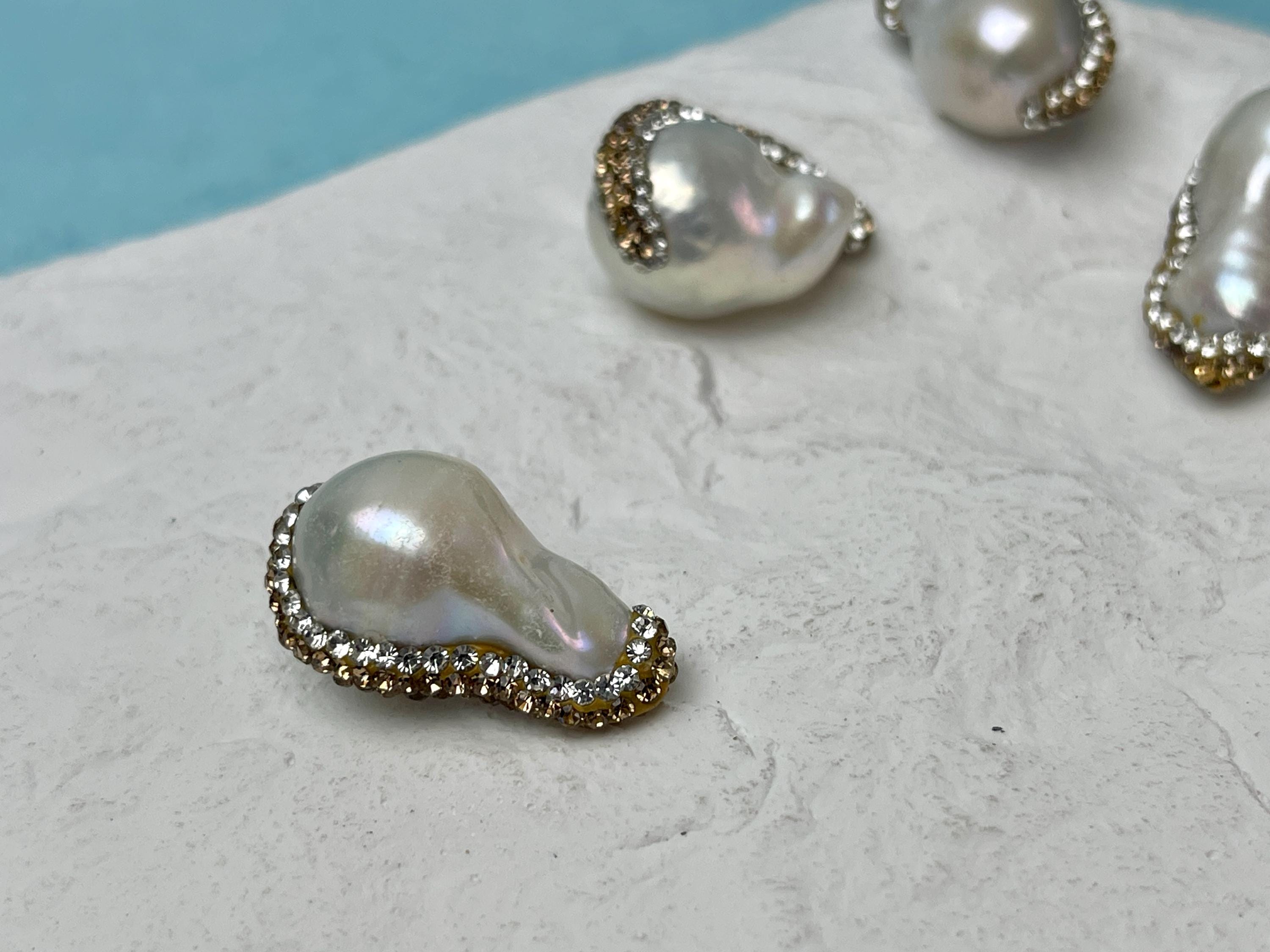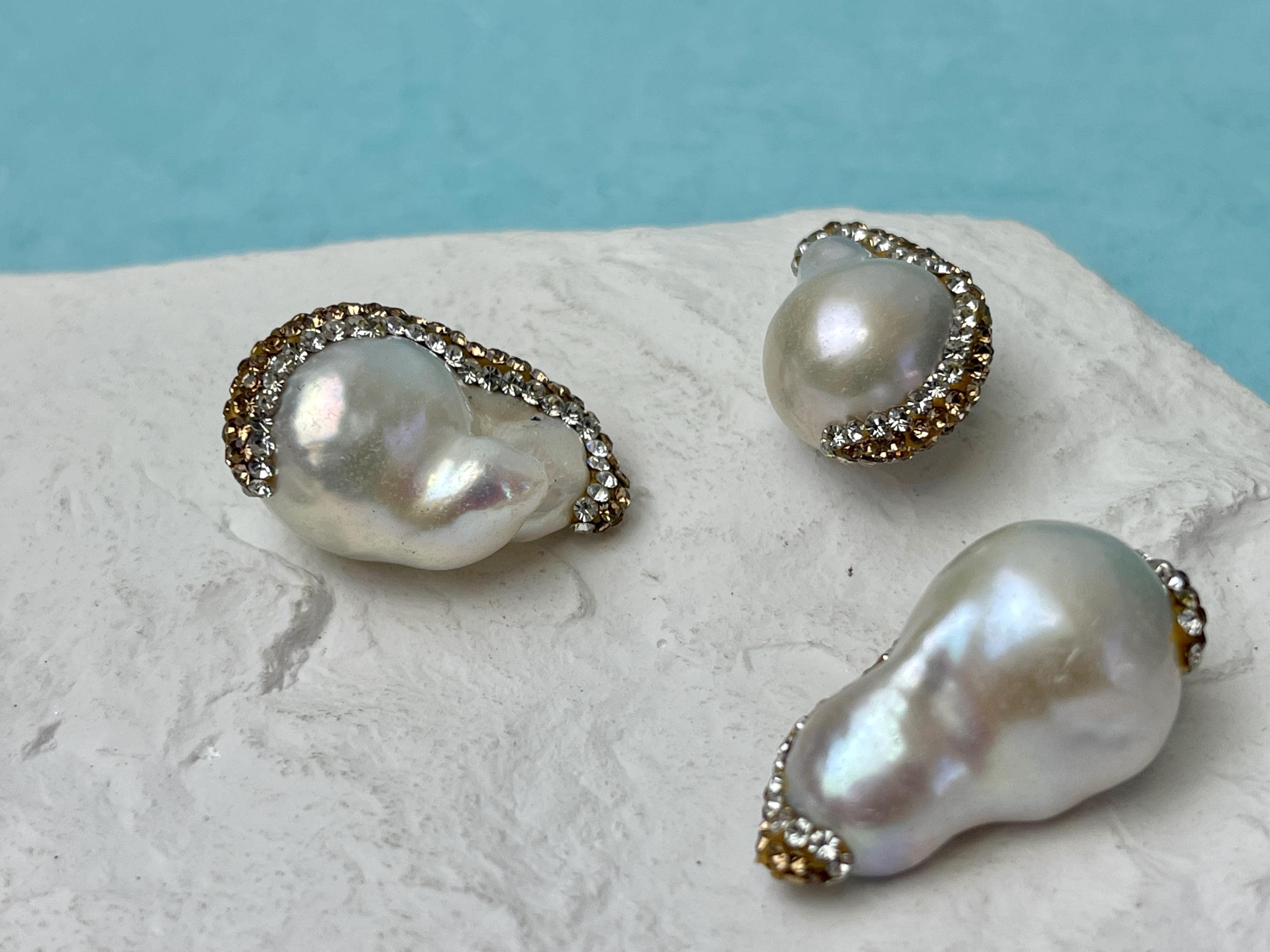 Material: Freshwater Baroque Pearl With Yellow Gold Rhinestone