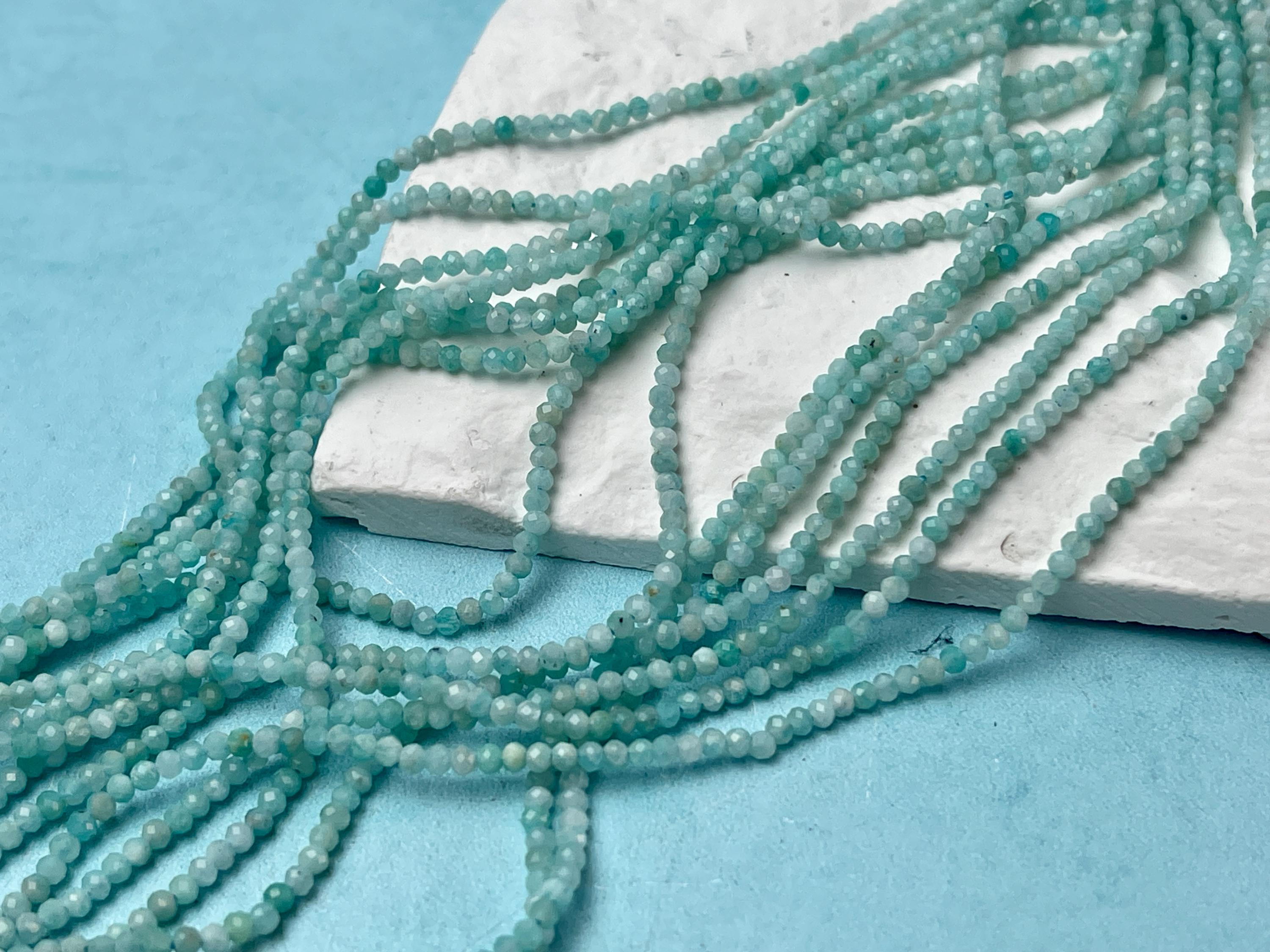 2 mm Natural Color Amazonite Gemstone Beads Blue Green Color Faceted Round Shape #4520