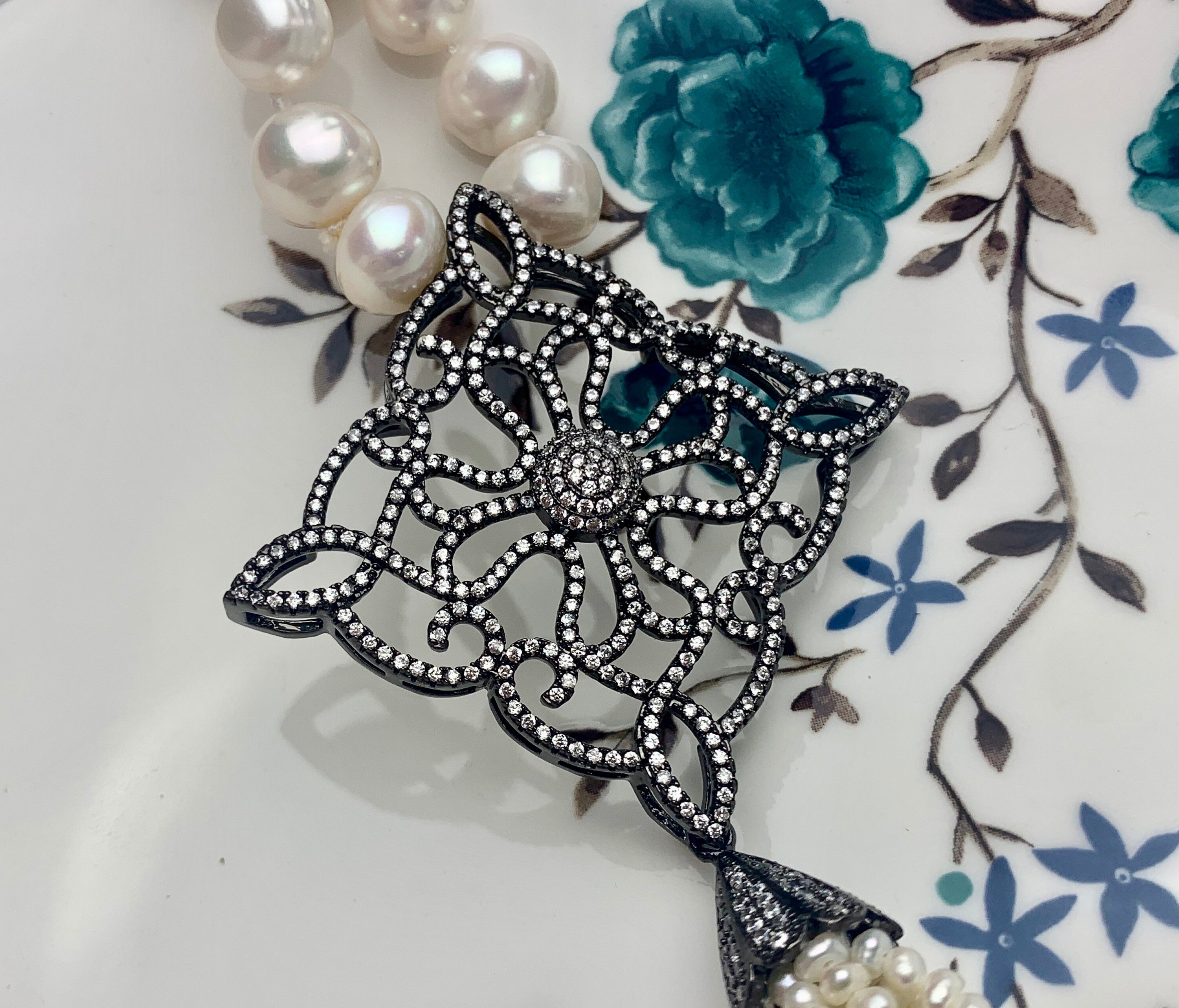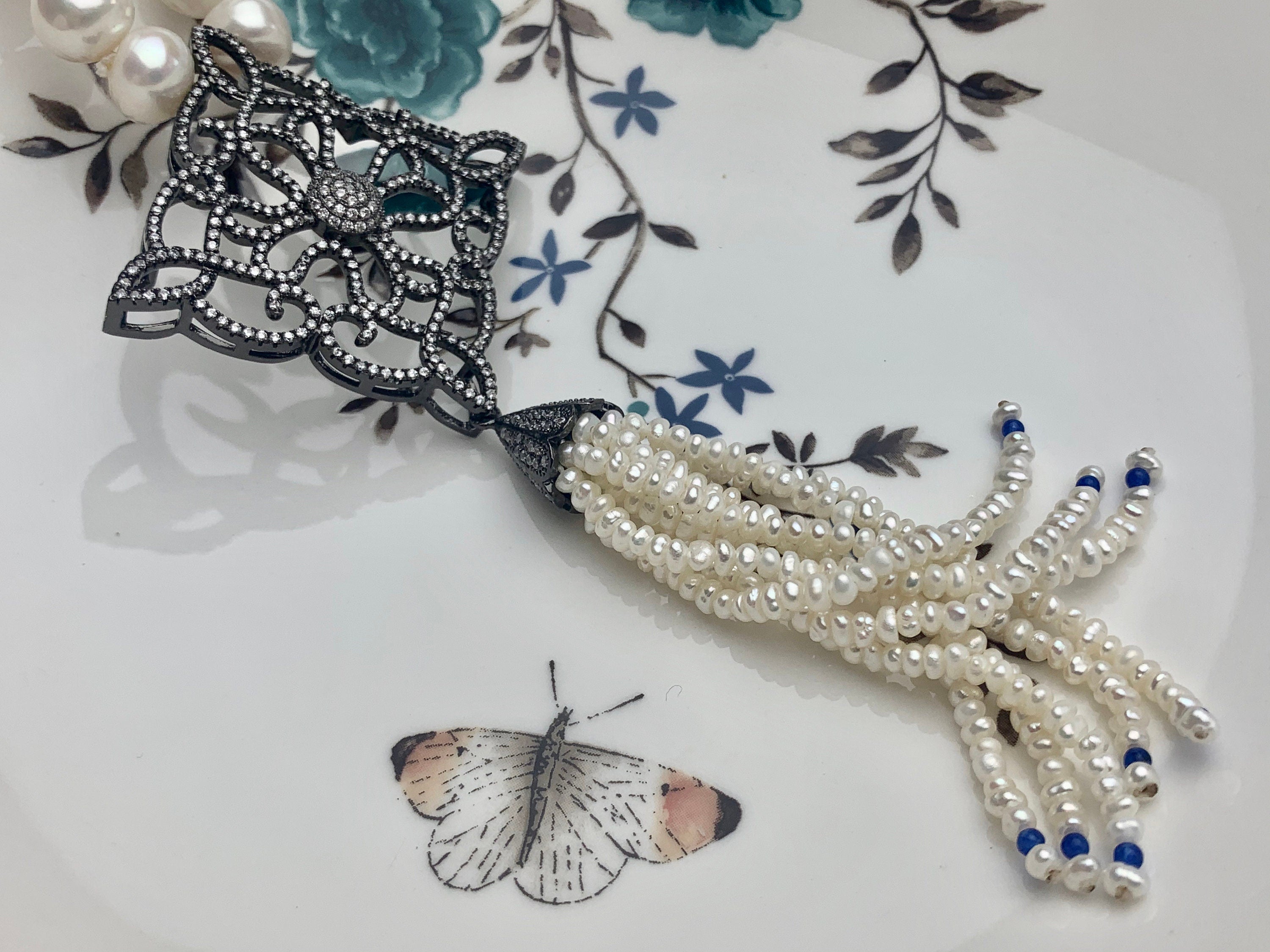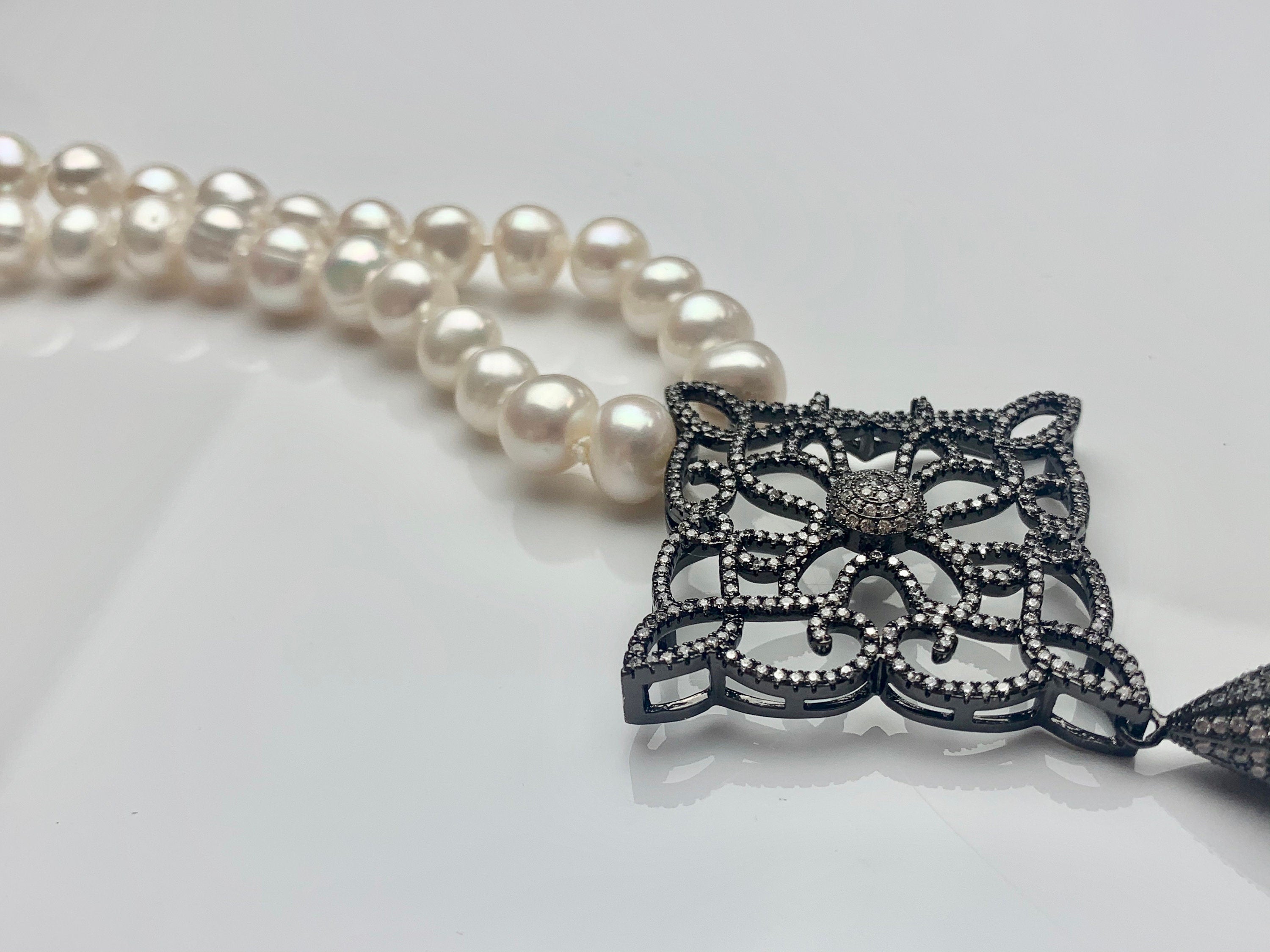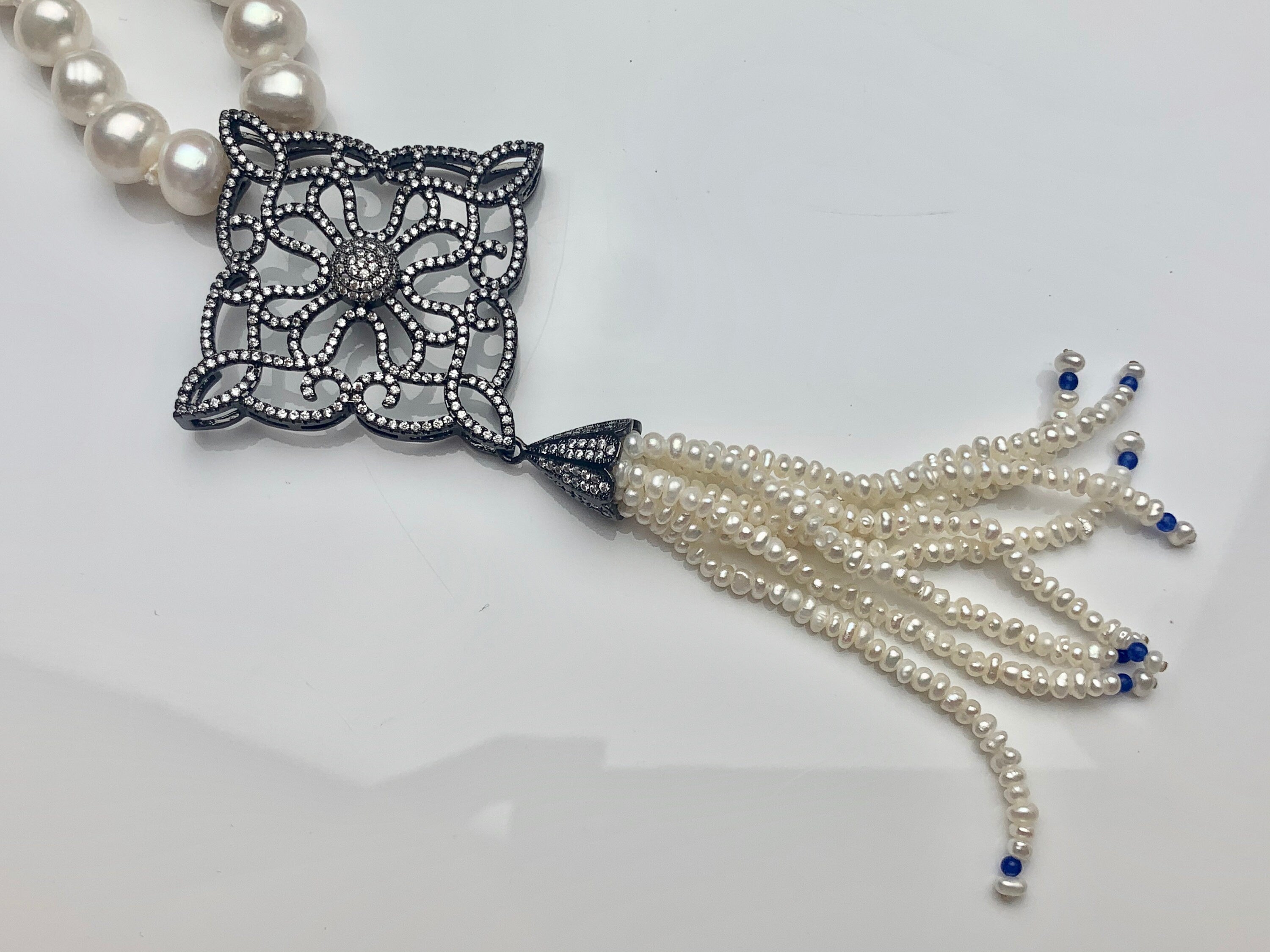 Color : Natural White Pearl Necklace with Pearl Tassel