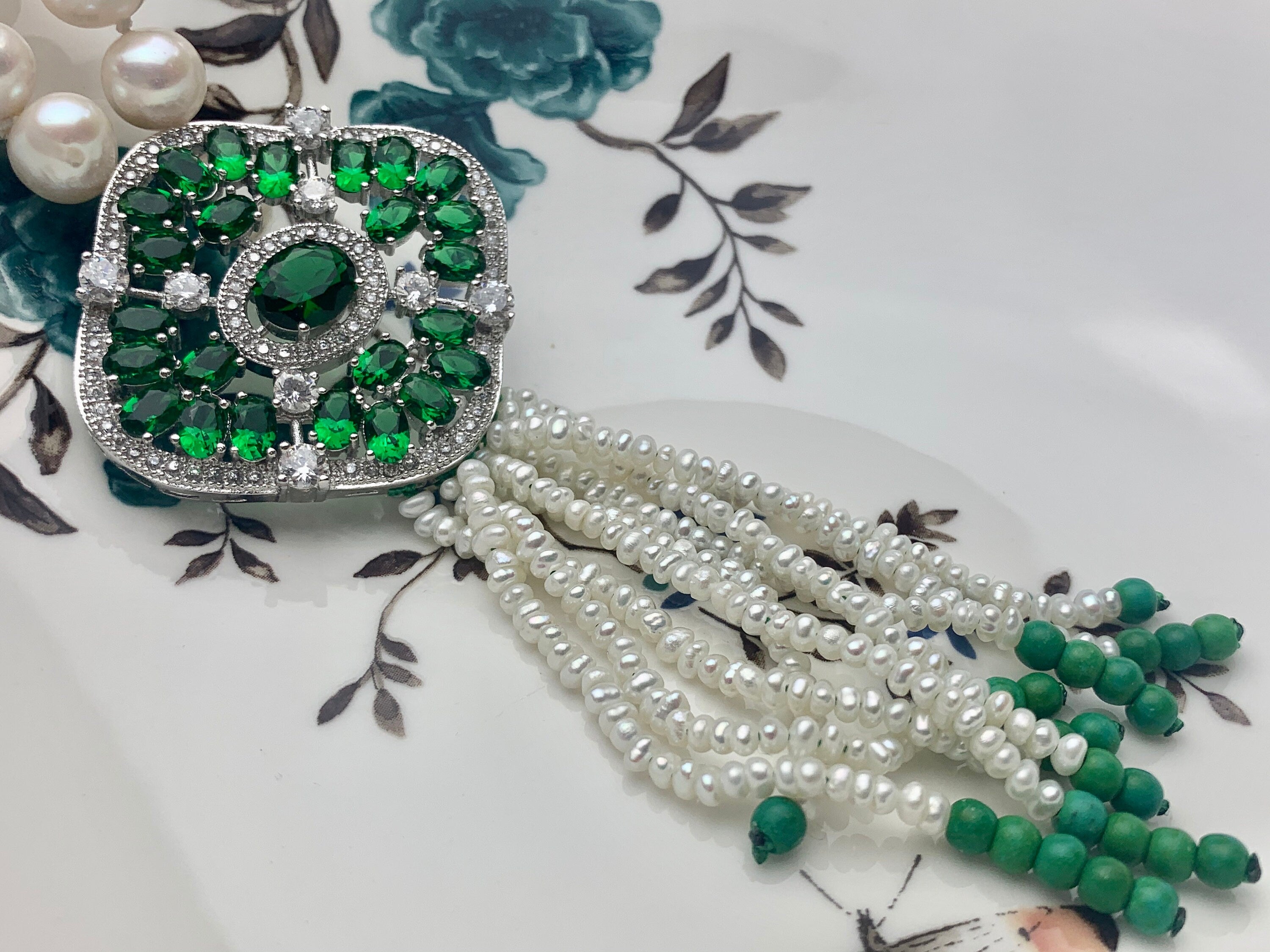 Color : Natural White Pearl Necklace with Pearl Tassel