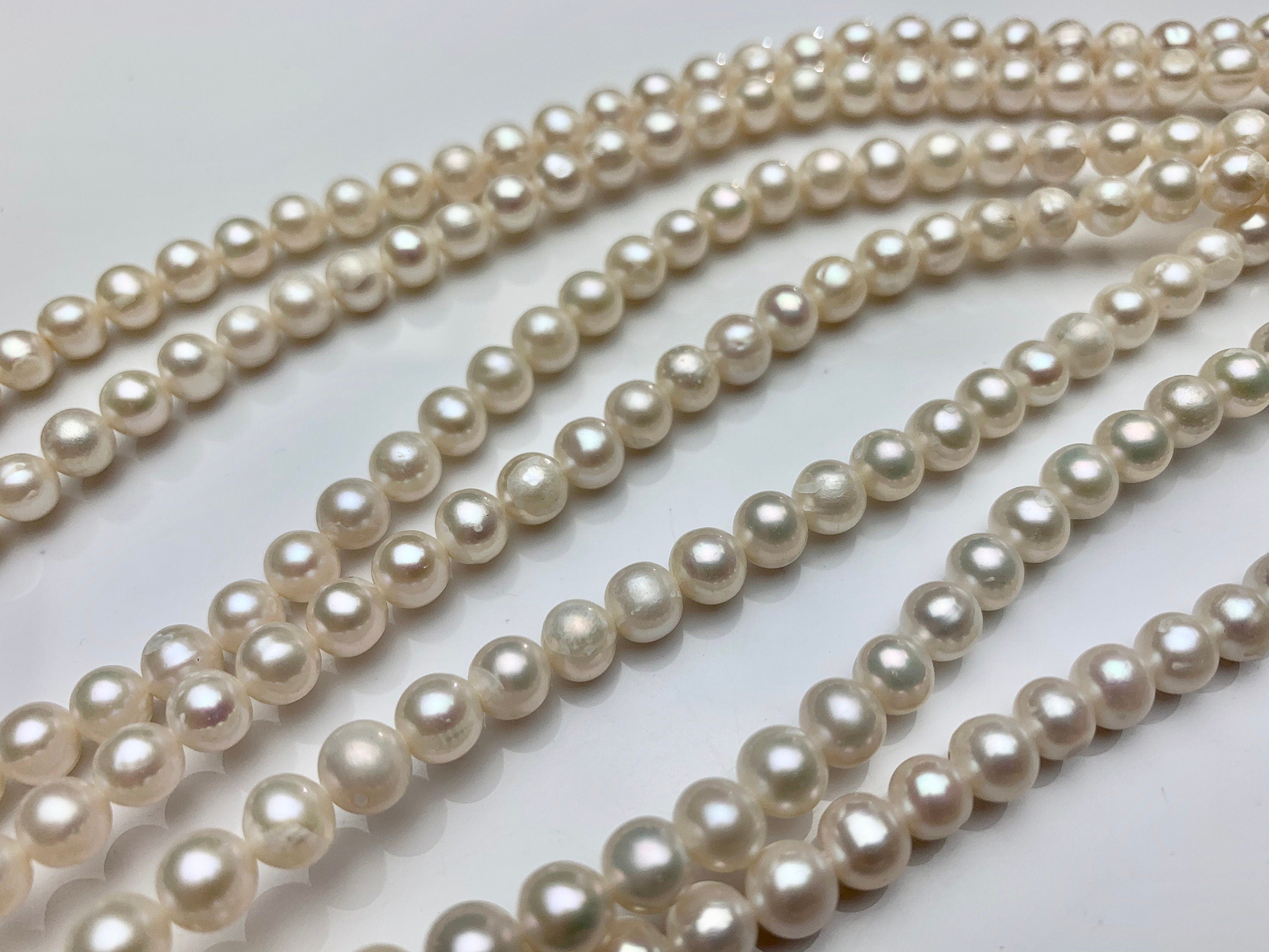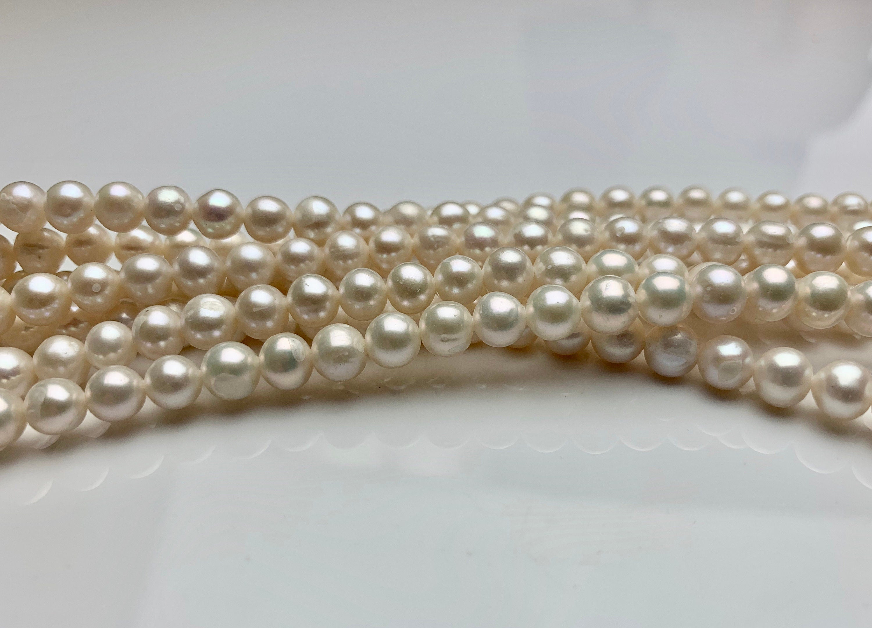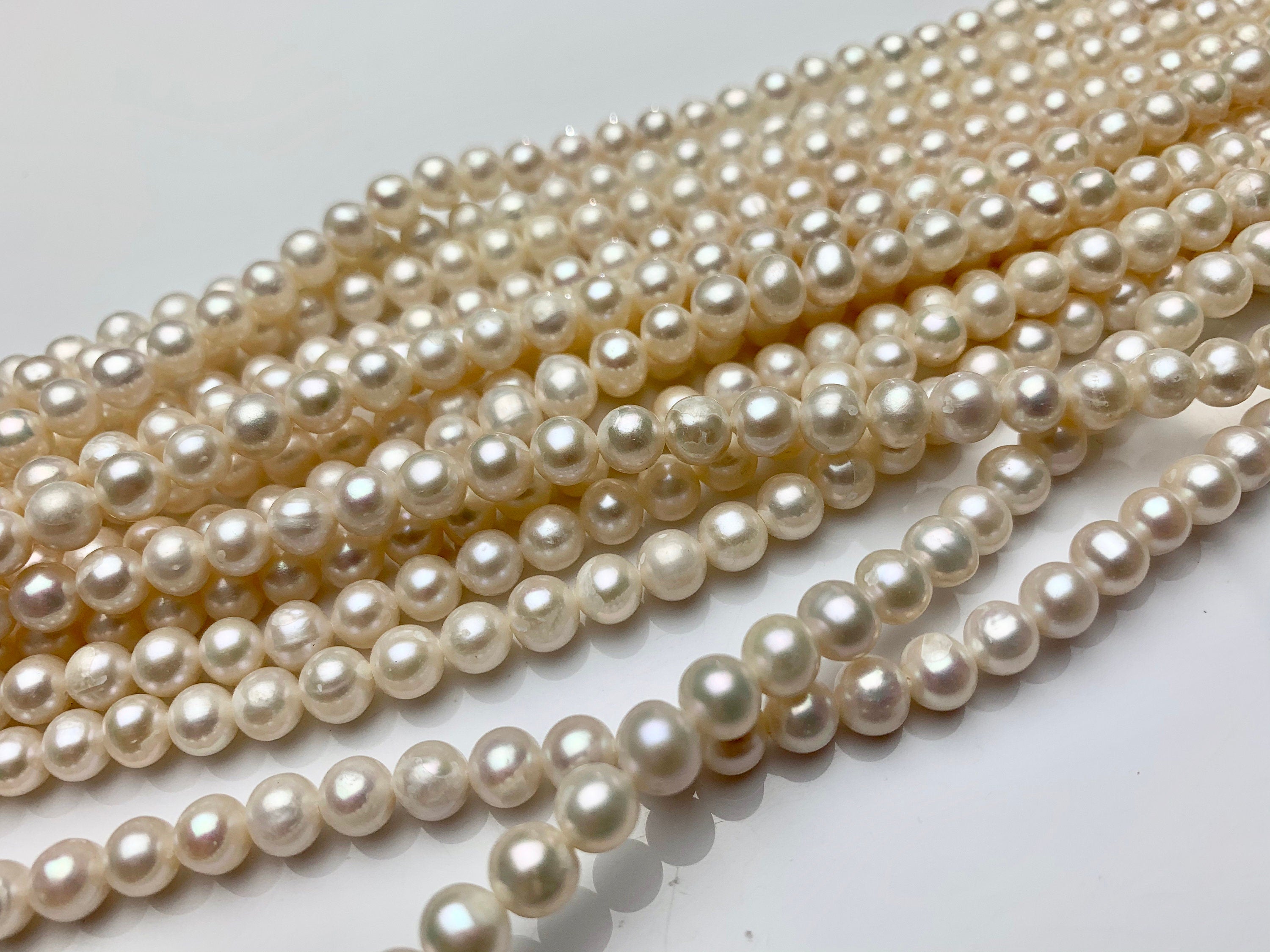 4-6 mm Natural White Off Round Freshwater Pearl Beads Genuine Natural Freshwater Potato Pearls #1433