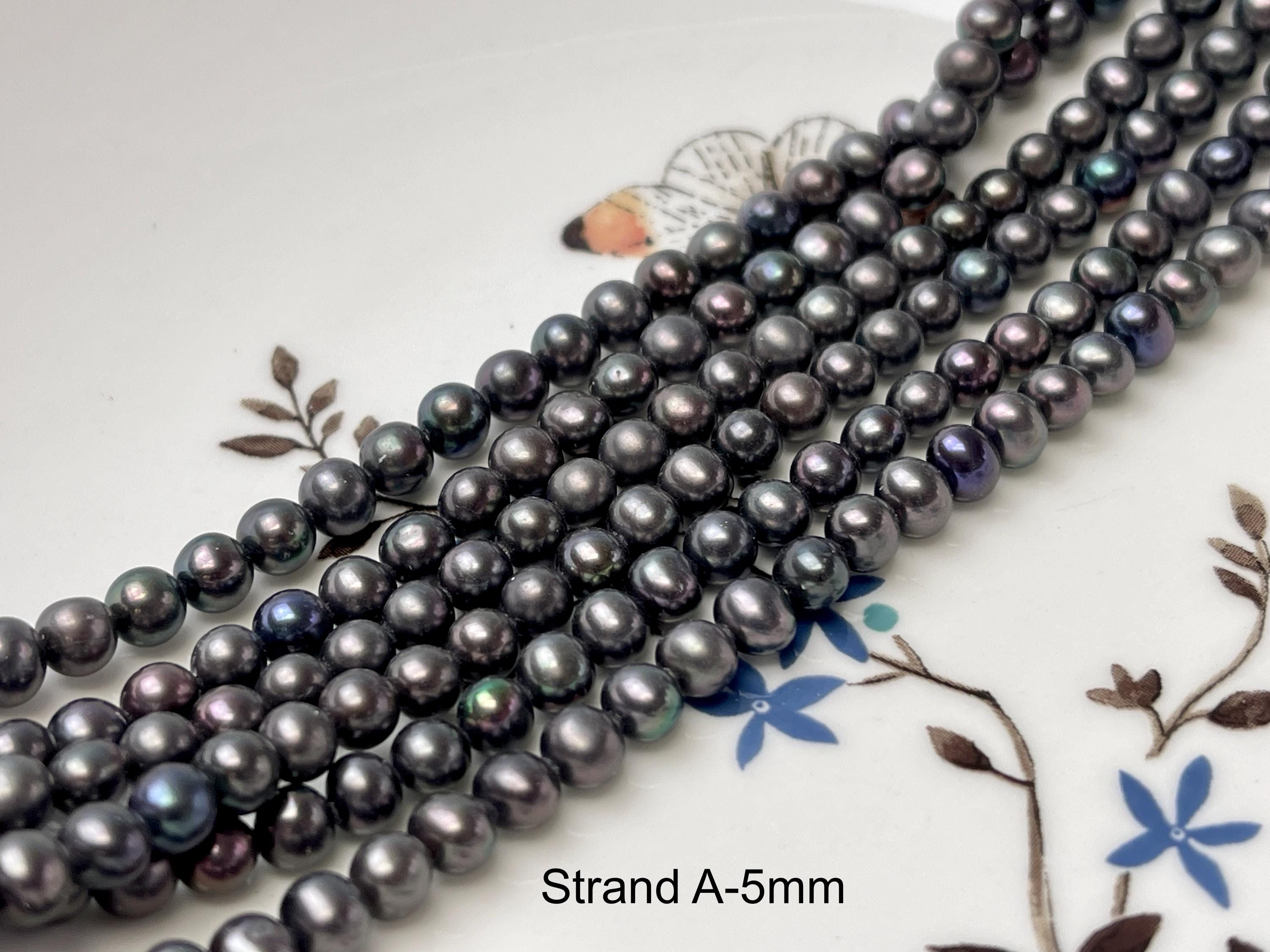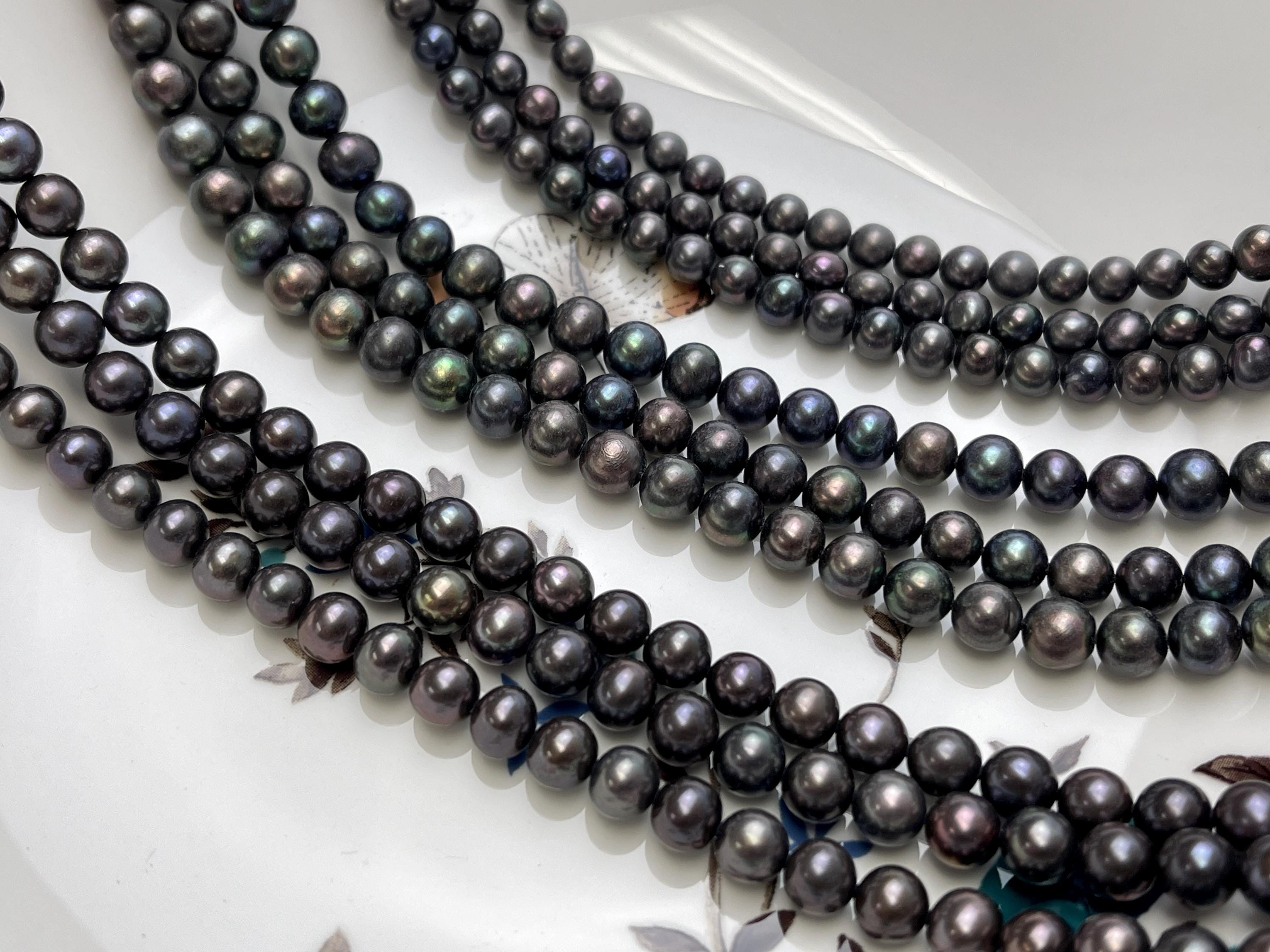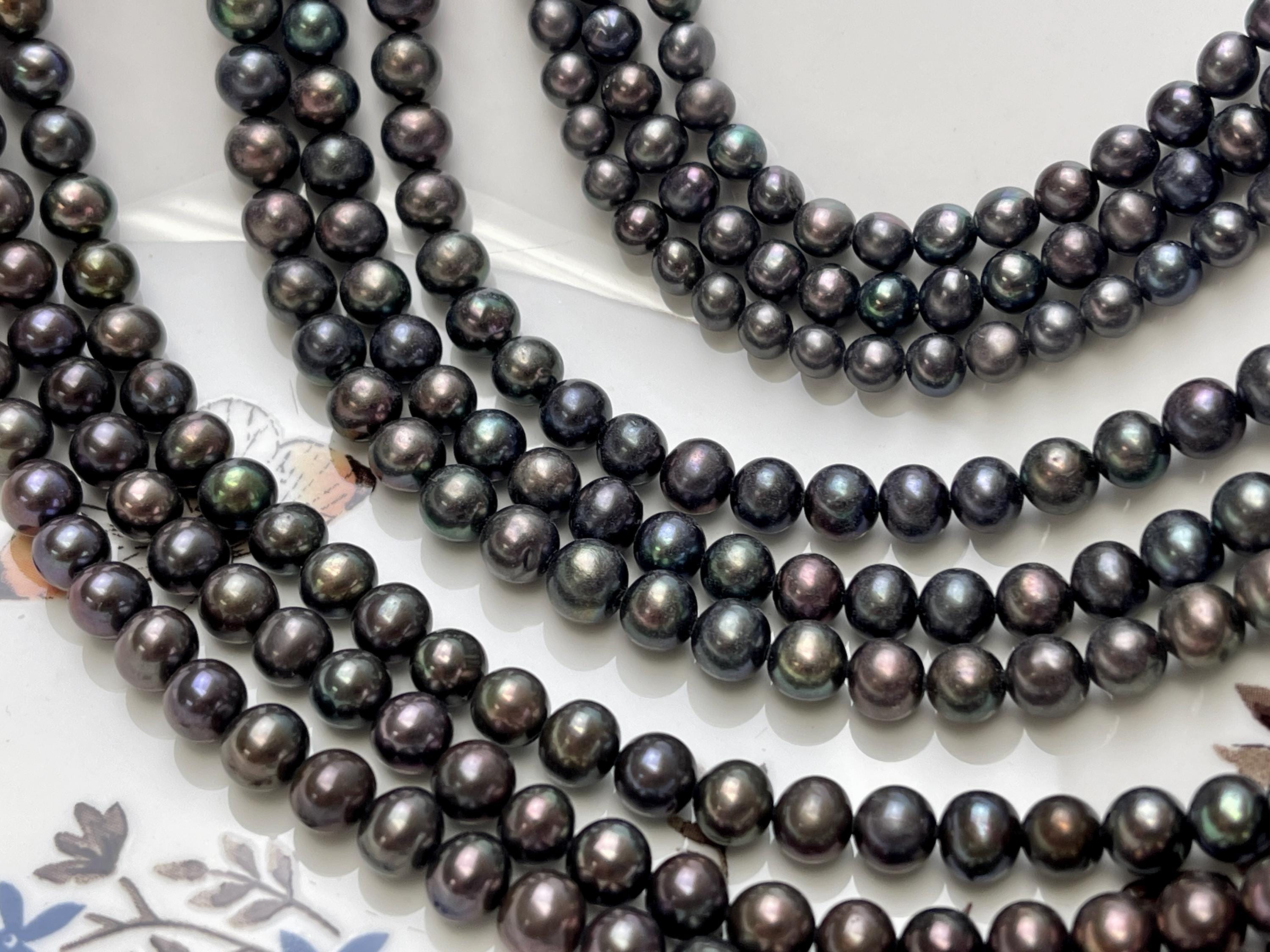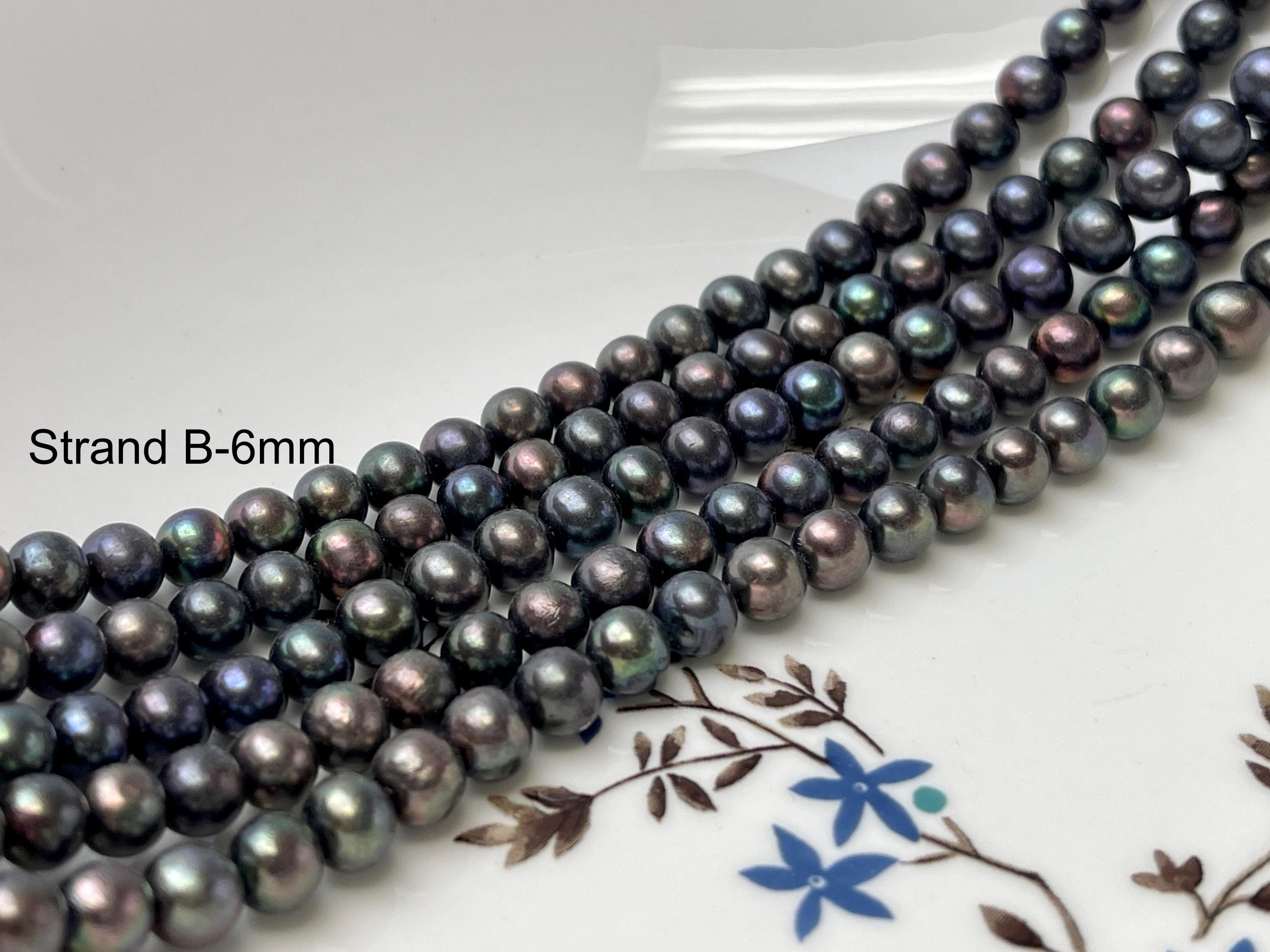 5mm 6mm AAA Dark Gray Peacock Color Freshwater Pearl Bead Genuine Peacock Near Round Pearls #P2793