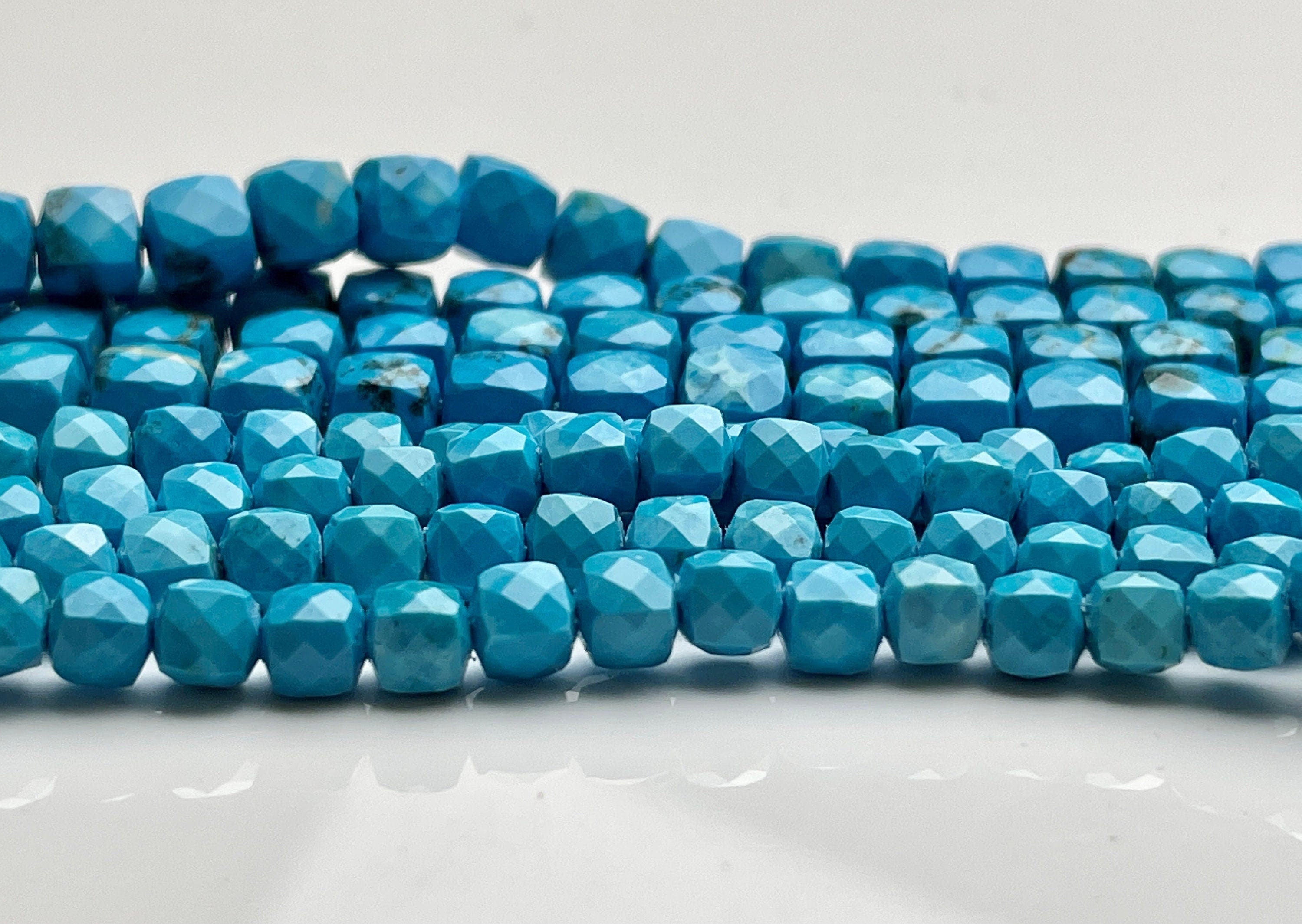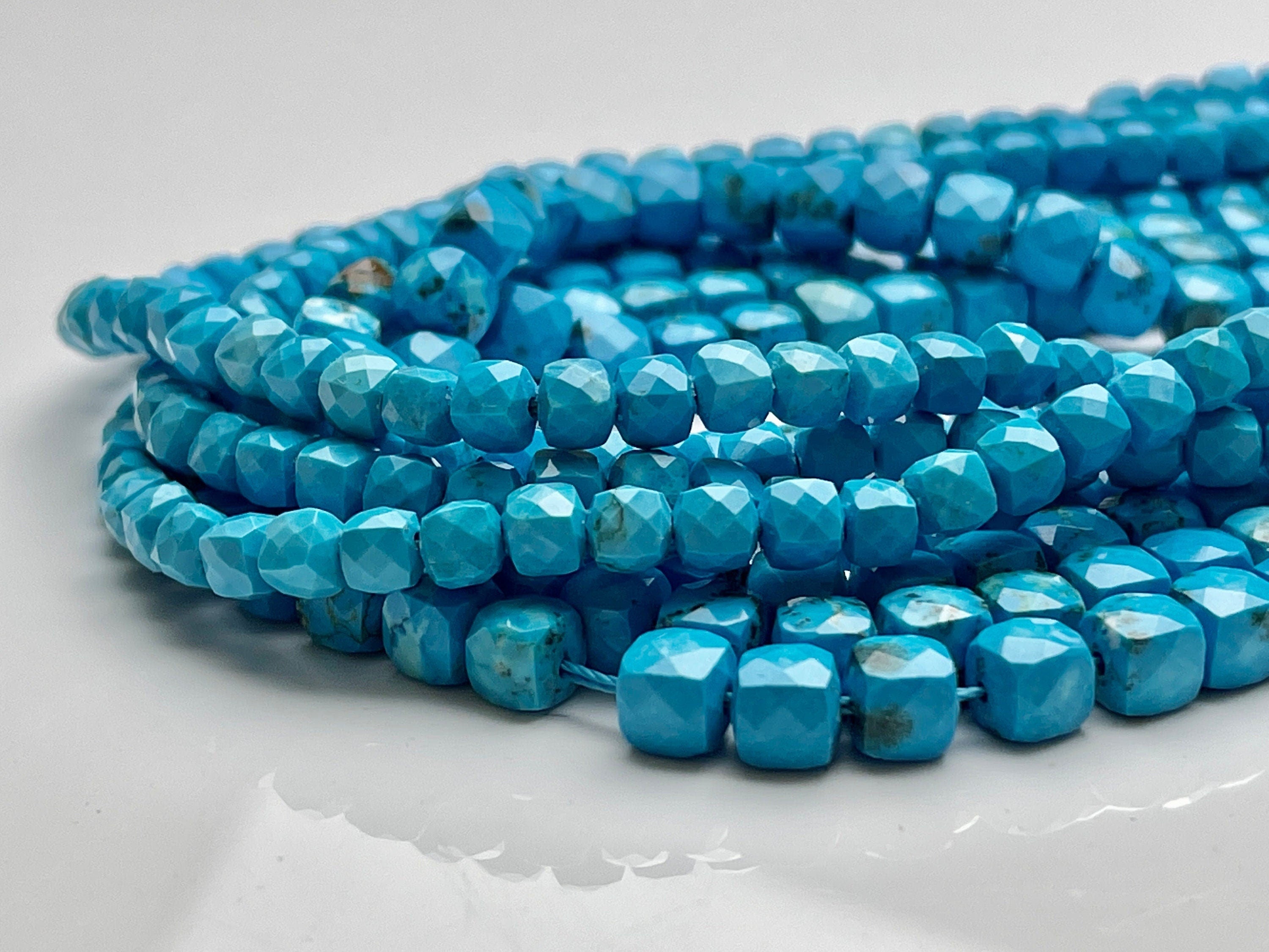 Material : Magnesite Turquoise Gemstone Quantity : Full Strand- 15.5 Inches Shape : Micro Faceted Cube Dice Shape Bead Size: Approx.... Read more