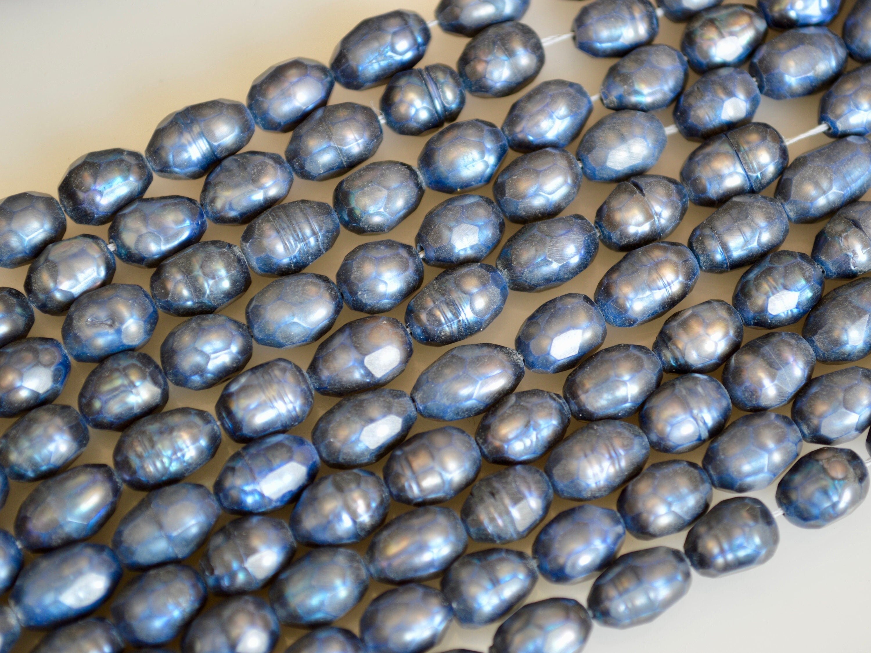 Material : Genuine Freshwater Faceted Pearl Quantity : Full Strand- 15.5 - 16 Inch Shape : Rice / Oval Faceted Bead... Read more