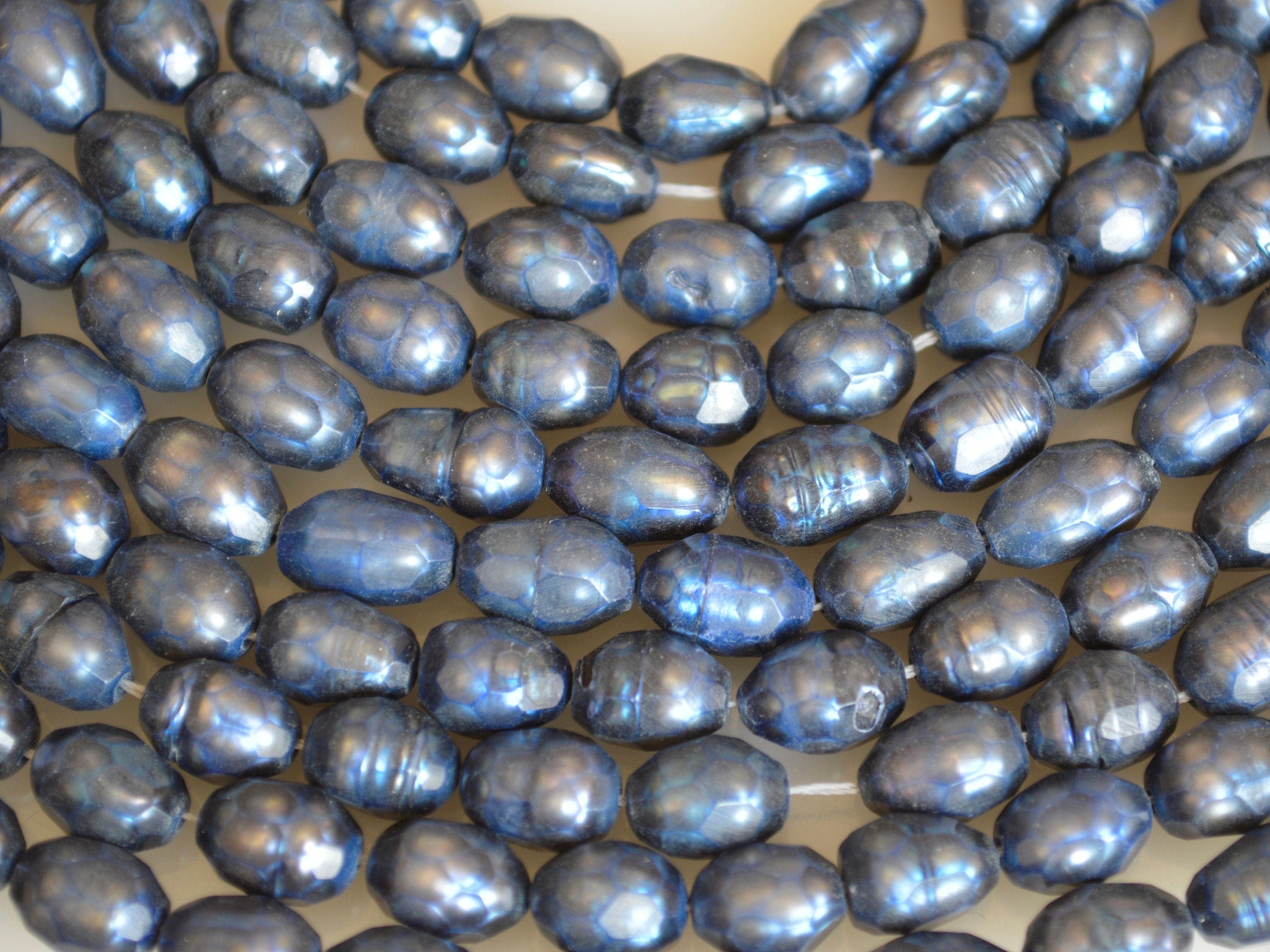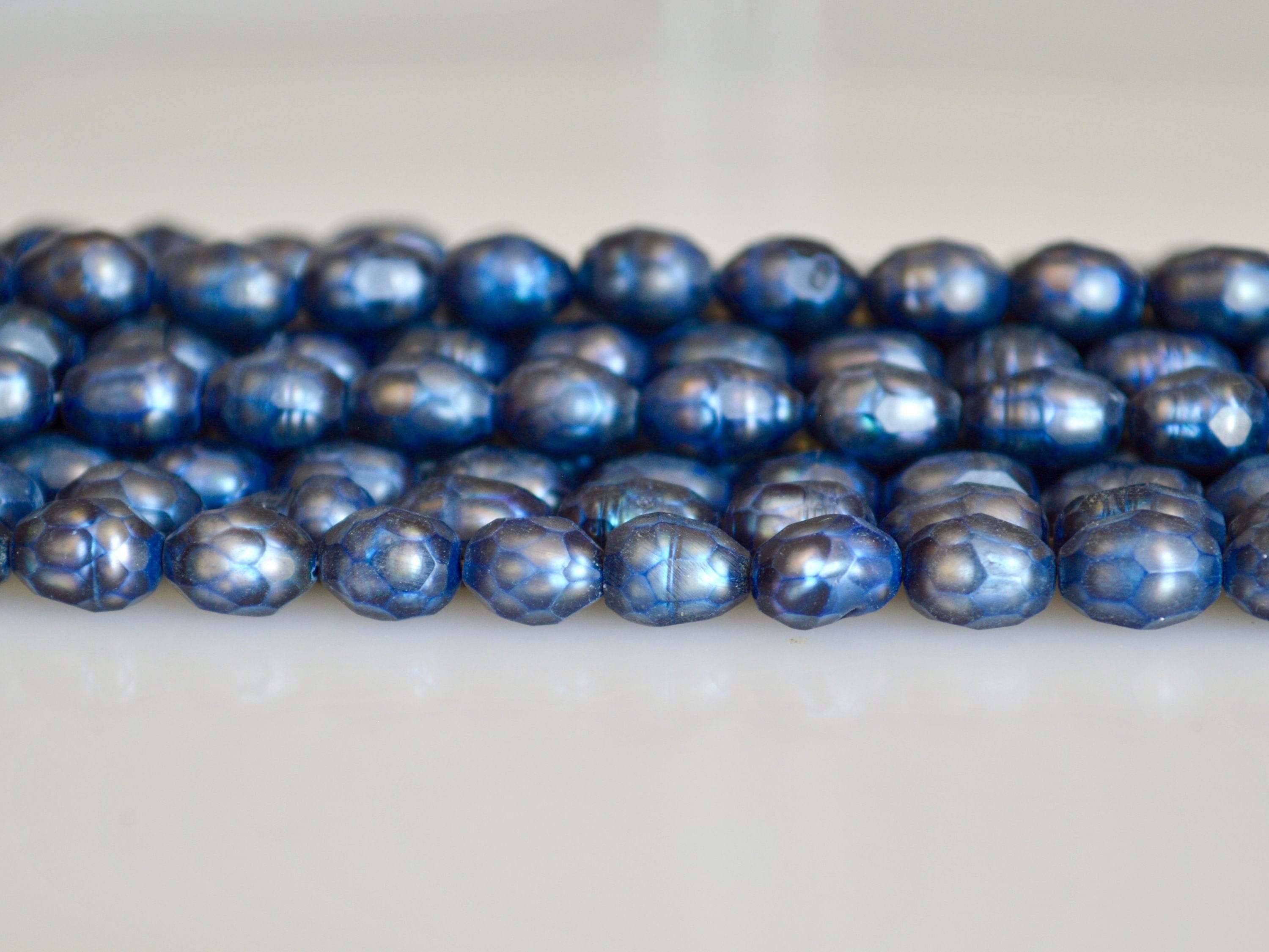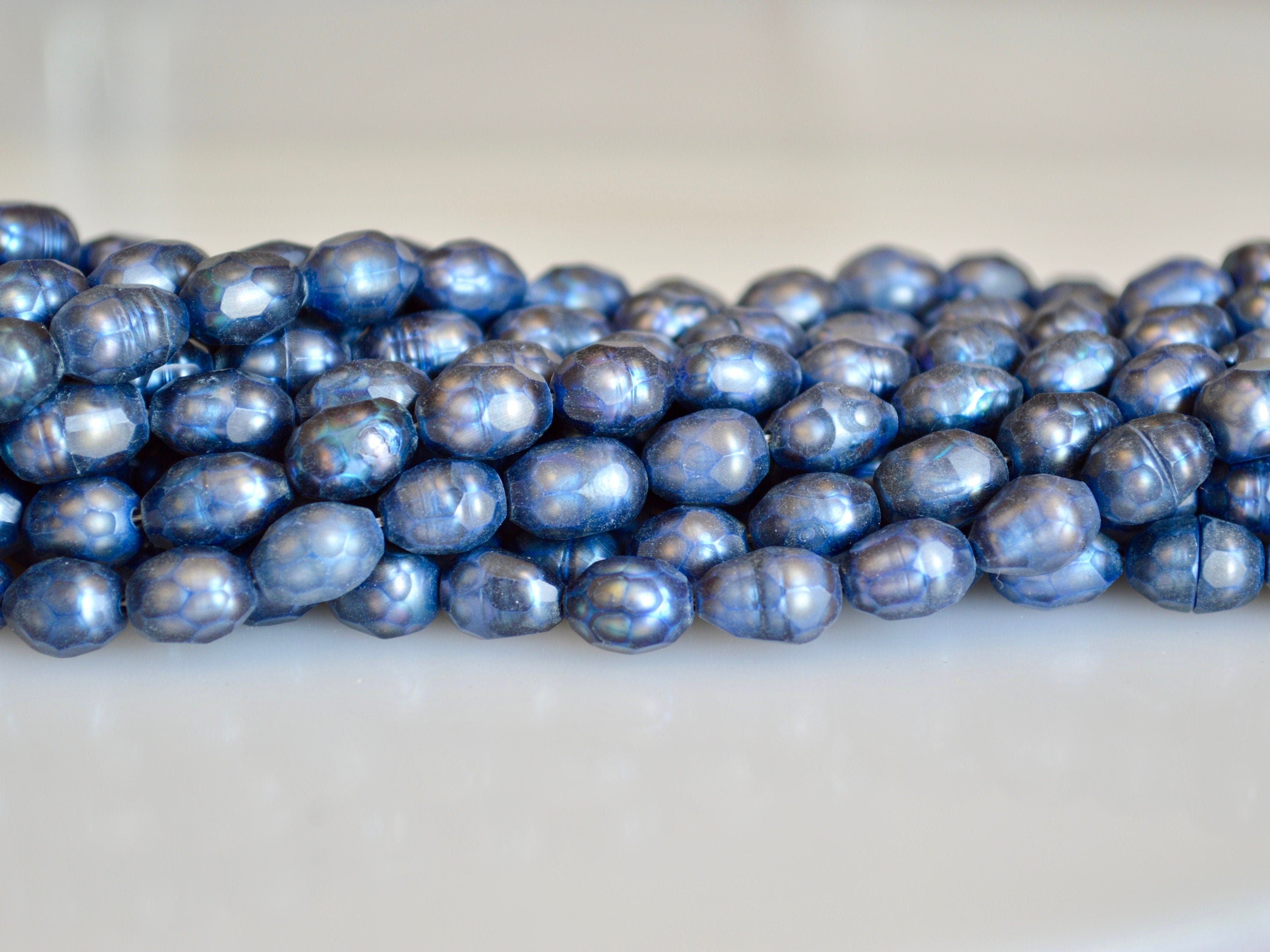 6-7x8-9mm Faceted Rice/Oval Freshwater Pearl Beads Dark Blue Color Pearl #815