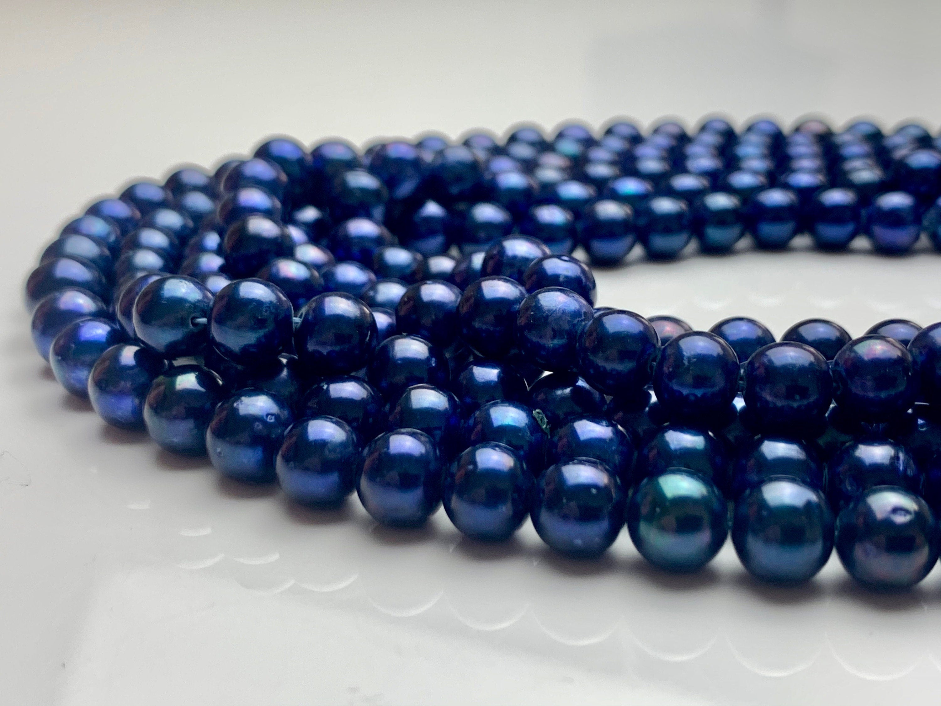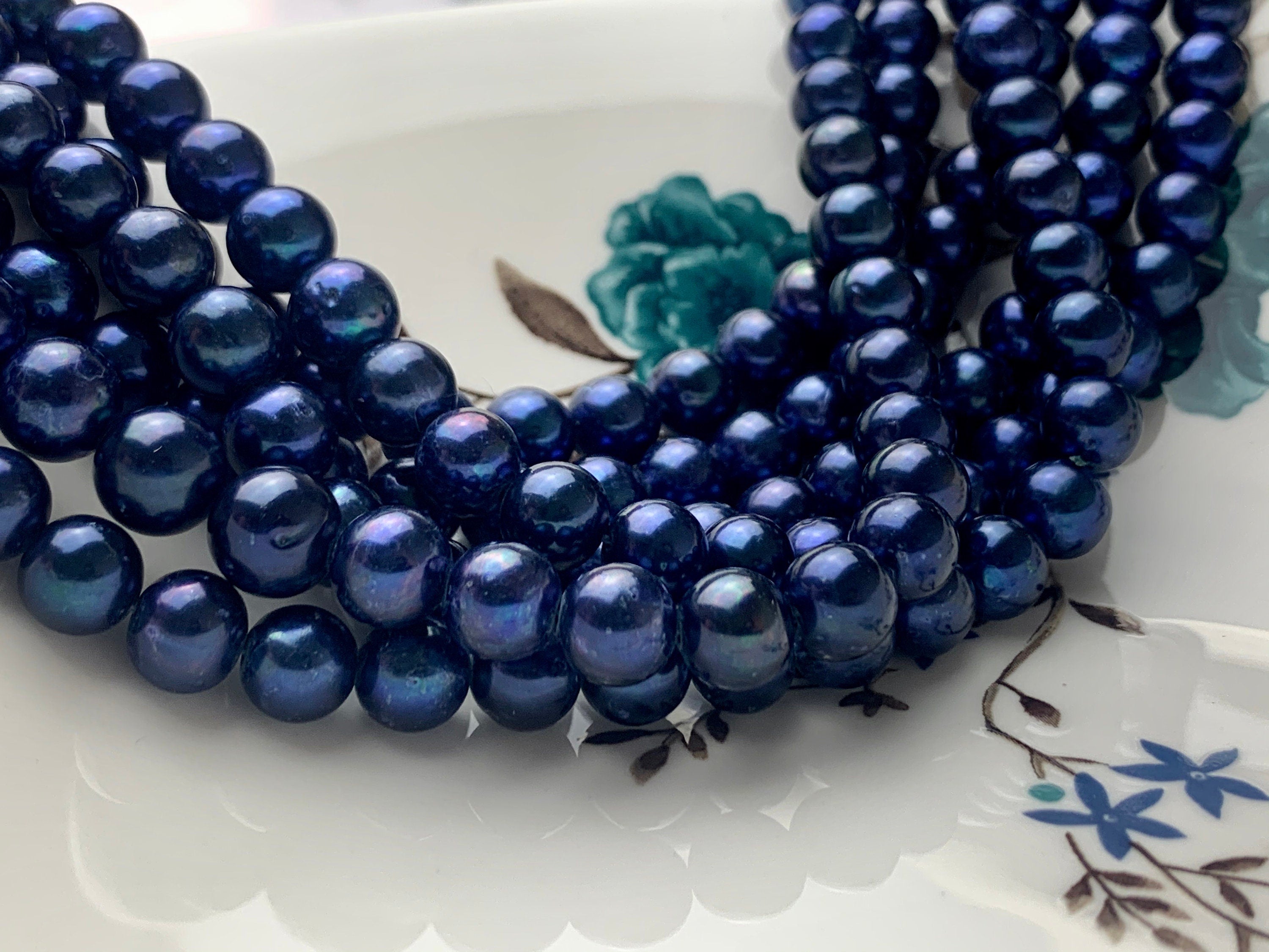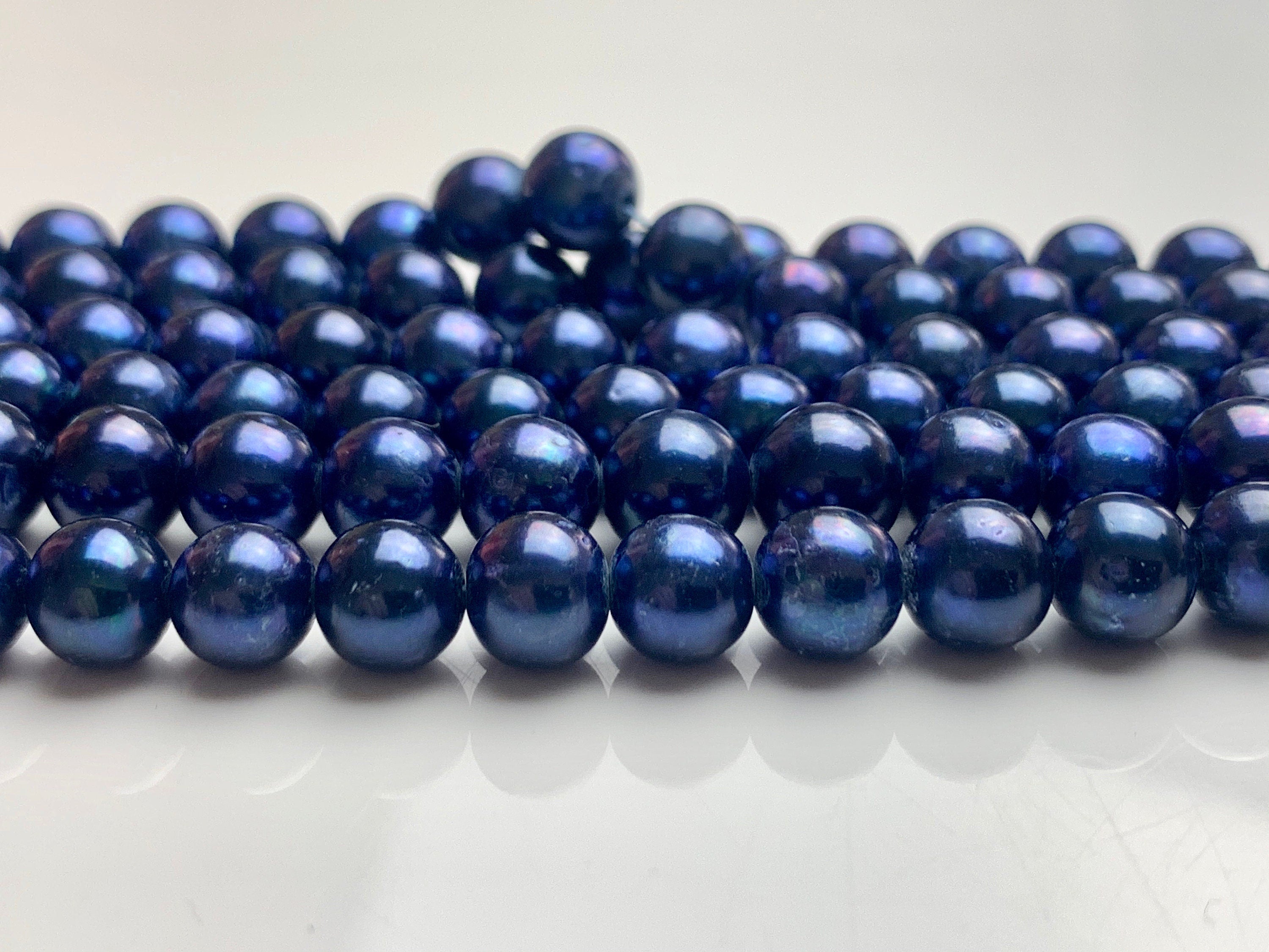 7-8mm AAA Off Round Freshwater Pearl Beads Dark Royal Blue Color Genuine Cultured High Luster Freshwater Pearl 16 Inches Strand #P1084