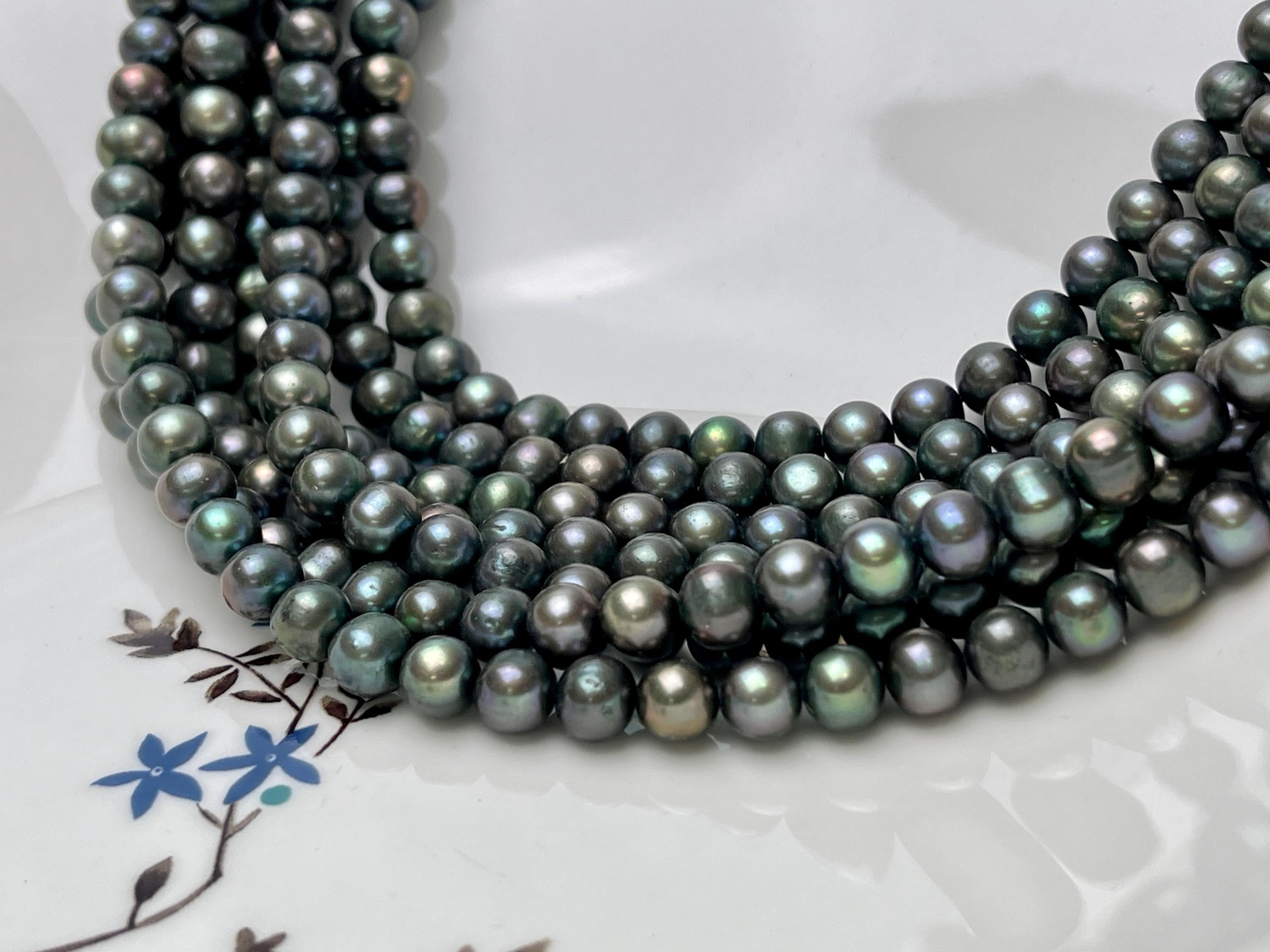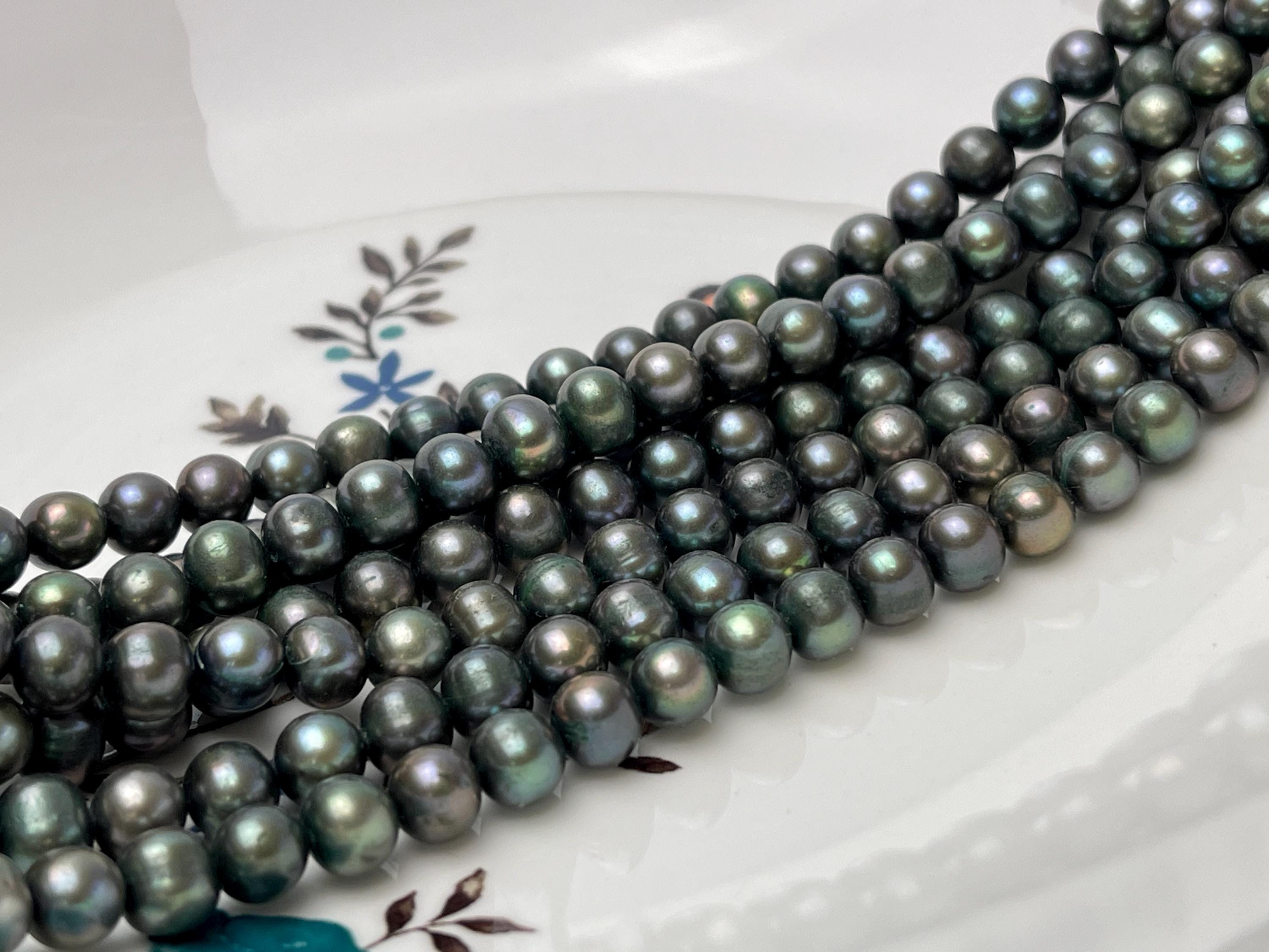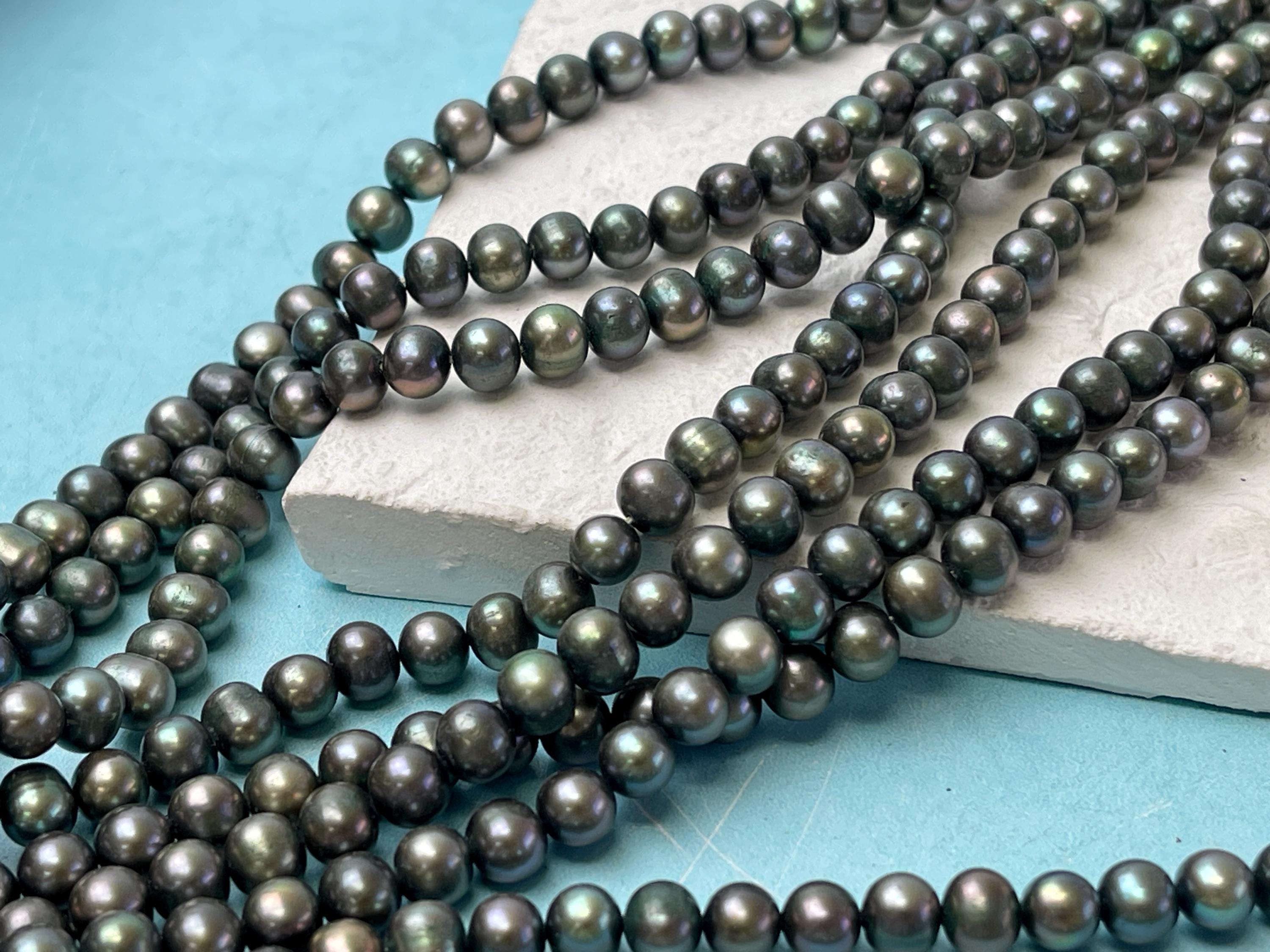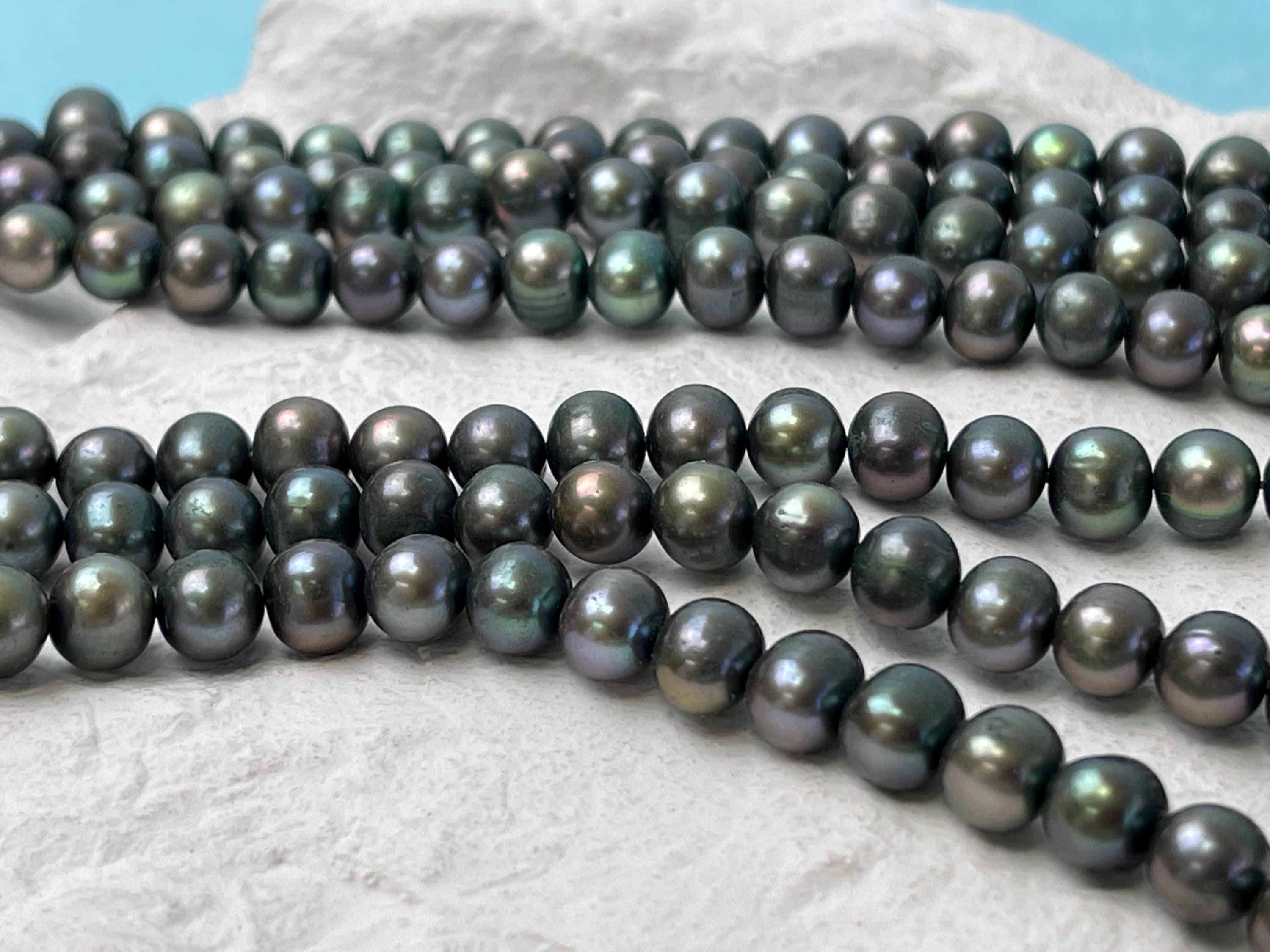 7 mm Dark Forest Green Potato Freshwater Pearl Beads Genuine Freshwater Pearl 61 Beads #P2916