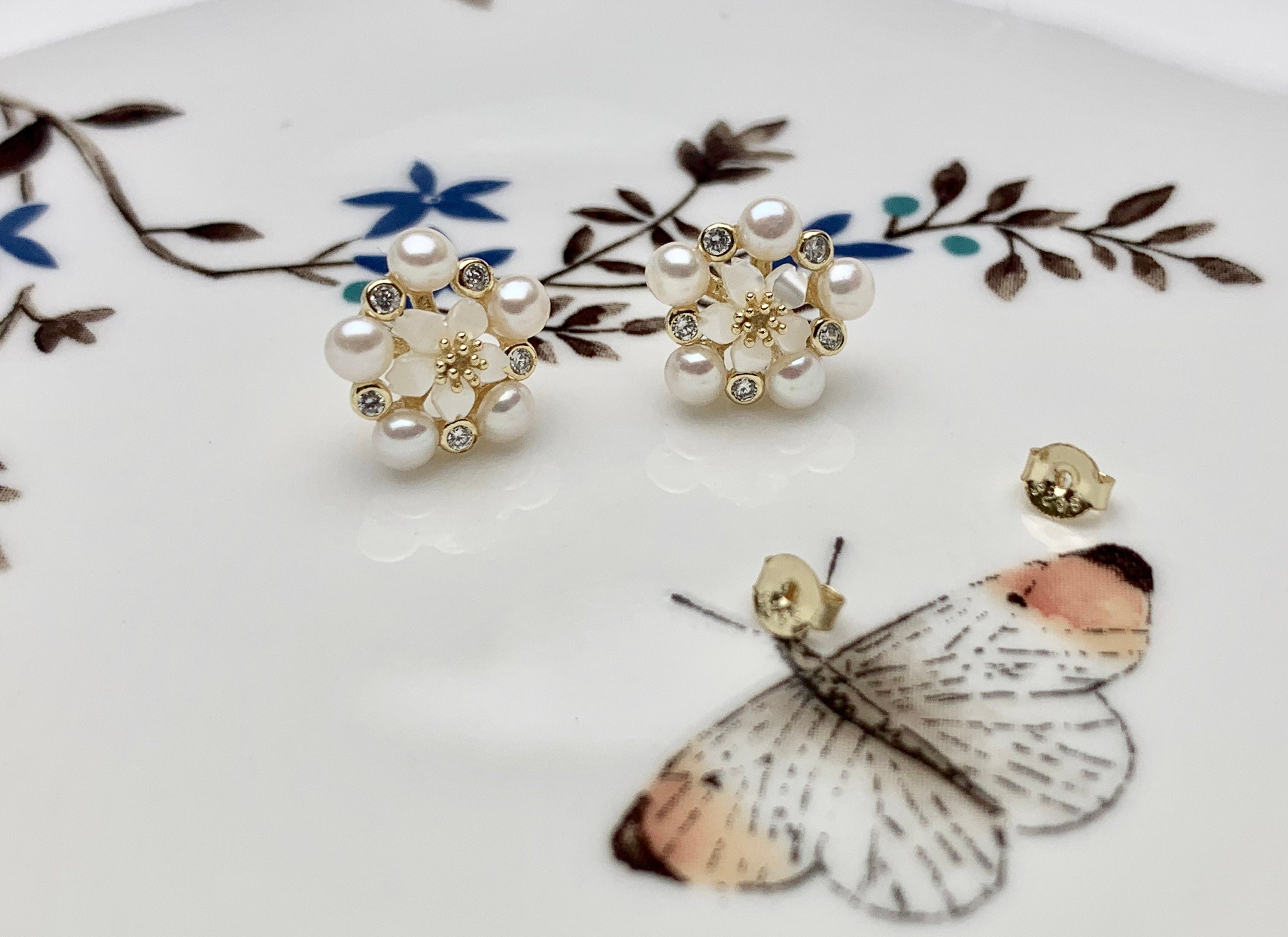 AAAAA Genuine Freshwater Pearl Earring Studs With 925 Sterling Silver/Gold Post Natural White Pearls Cluster Earring Bridal Jewelry #10047-J