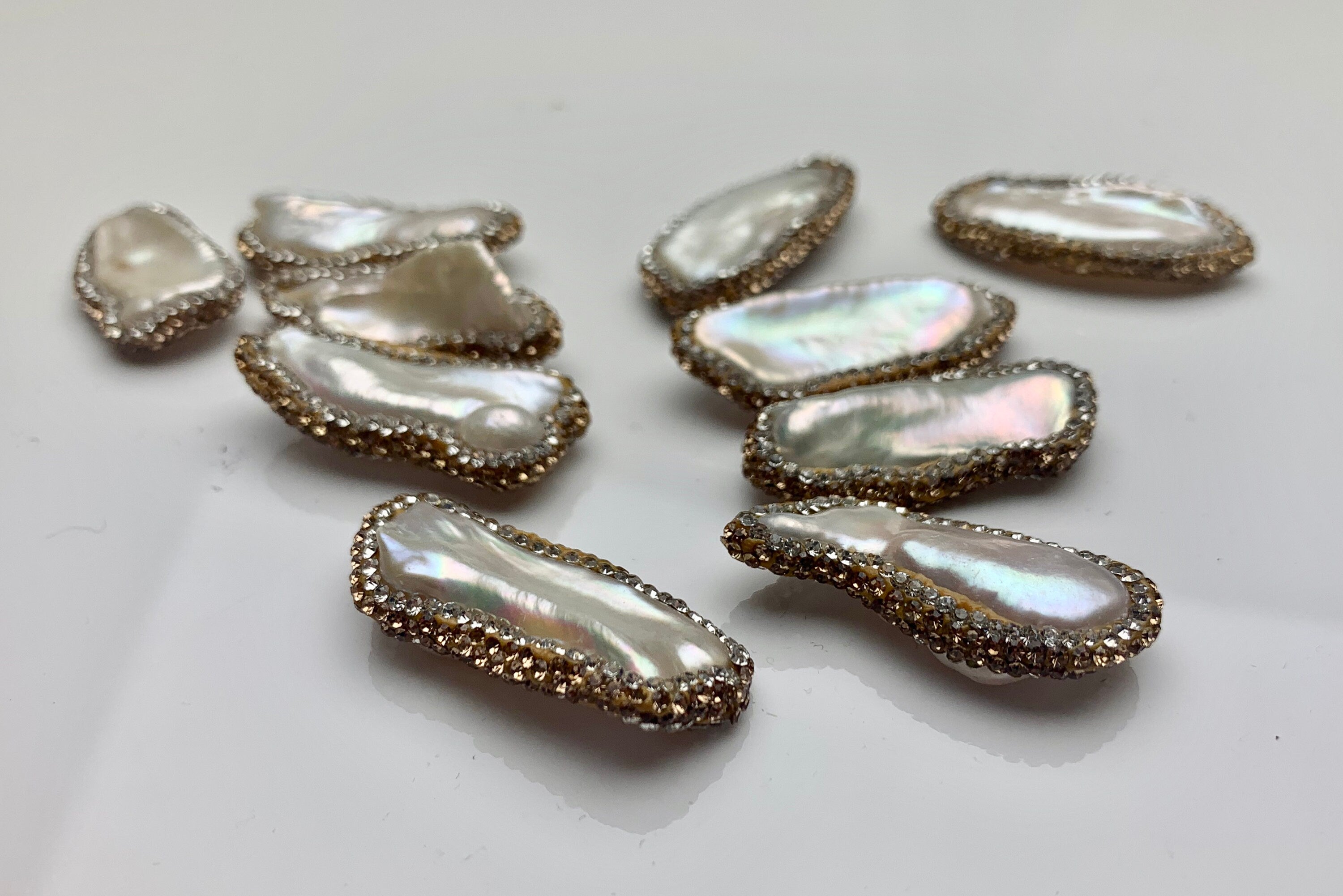 Shape : Natural Biwa Pearls (Beads won't be identical, please note). Double Sided