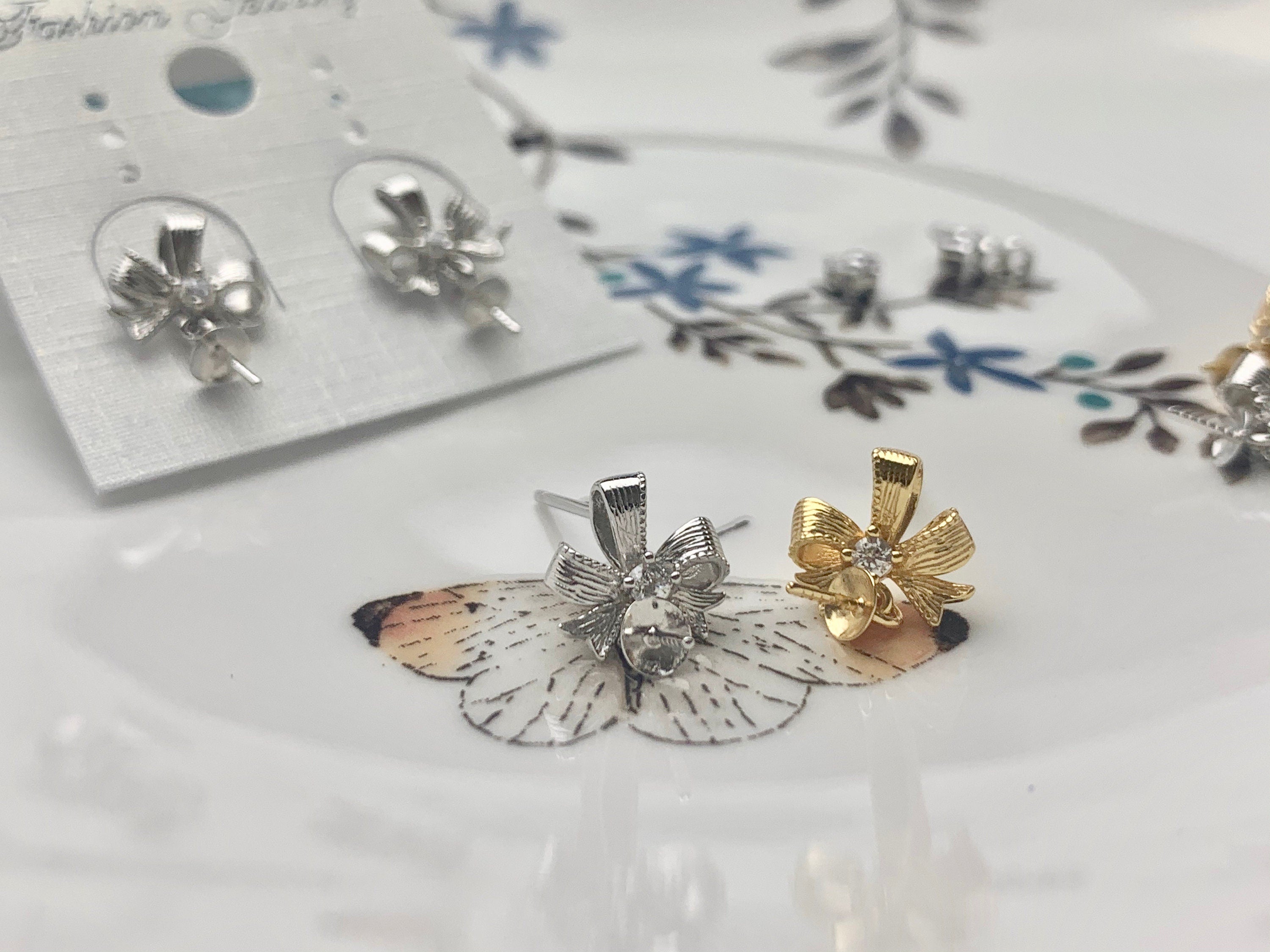Shape : Ribbon Bow Tie Shape W/CZ As Pictured