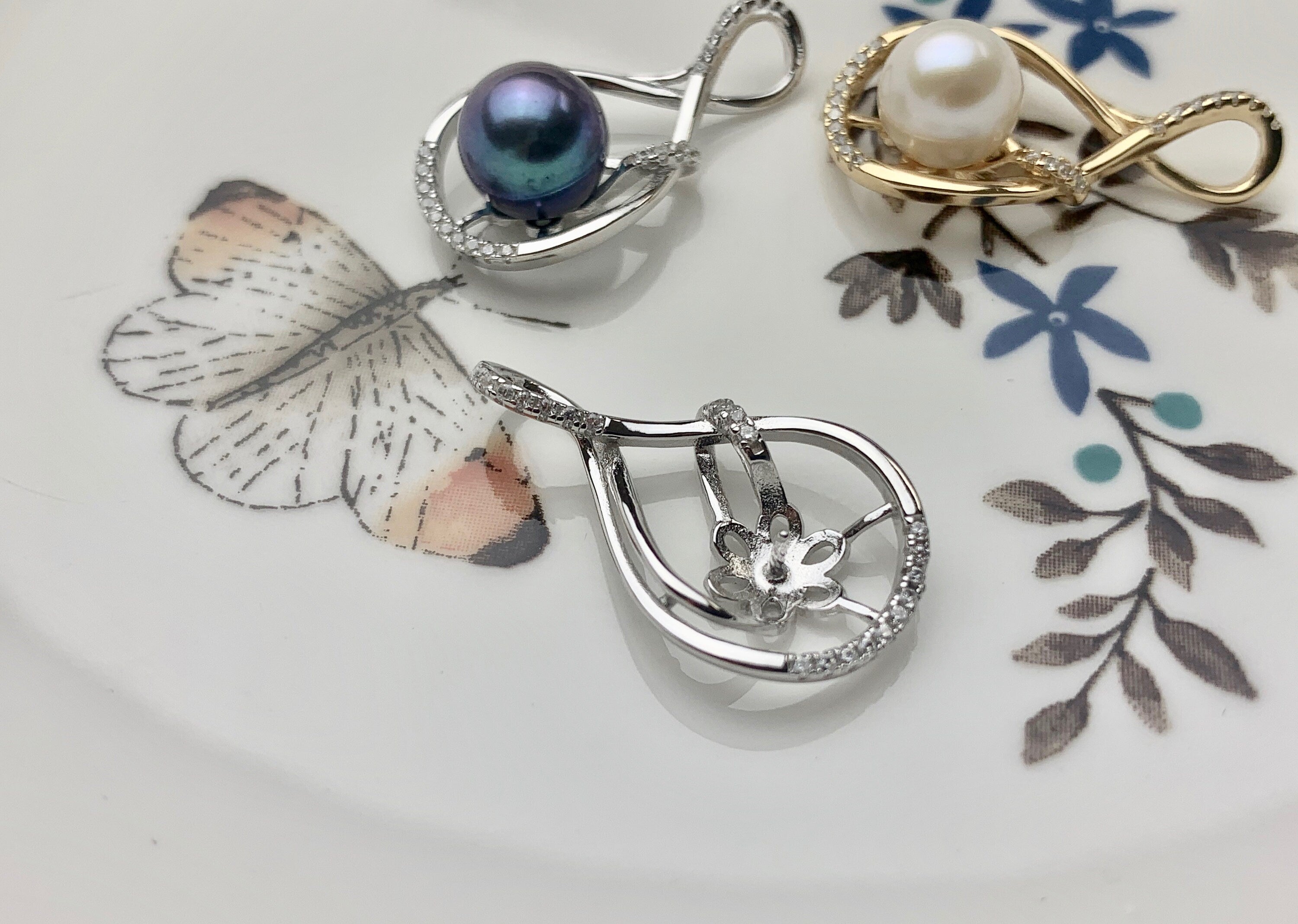 Pearls in Picture : White in 8 mm and Peacock in 9 mm